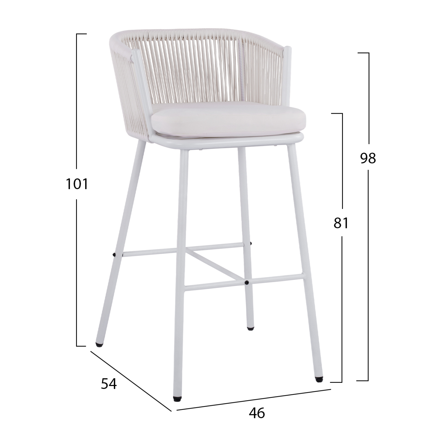 ΣΚΑΜΠΟ ΑΛΟΥΜΙΝΙΟΥ ΛΕΥΚΟ ΜΕ ΜΠΡΑΤΣΑ RATTAN & TEXTLINE 56x58x105Yεκ. HM5892.22