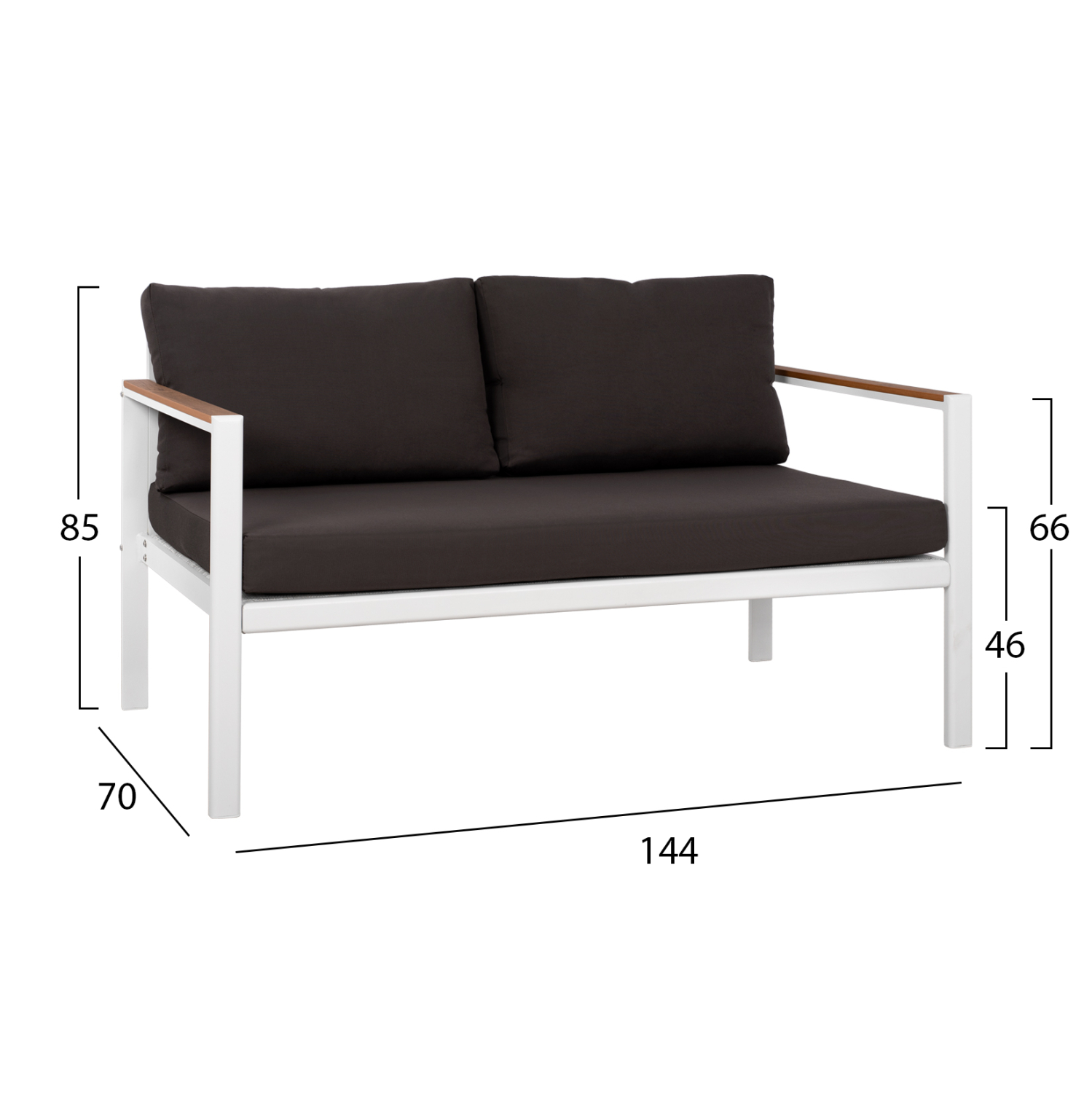 ΚΑΝΑΠΕΣ 2-ΘΕΣΙΟΣ SAFIYA HM5523.01 ΑΛΟΥΜΙΝΙΟ ΛΕΥΚΟ-ΑΝΘΡΑΚΙ ΜΑΞΙΛΑΡΙΑ 144x70x85Υεκ