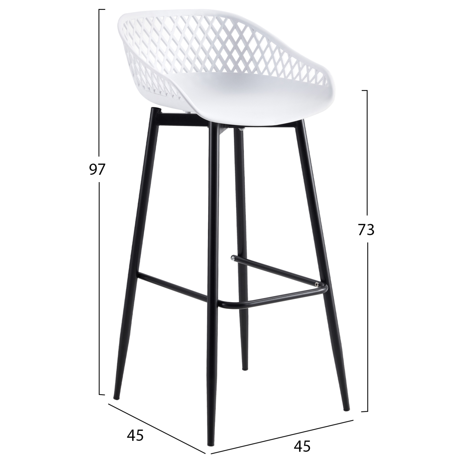 ΣΚΑΜΠΟ ΜΠΑΡ ΨΗΛΟ VANESSA HM8459.11 ΛΕΥΚΟ PP & ΛΕΥΚΑ ΜΕΤΑΛ.ΠΟΔΙΑ 47×48,5×107Υεκ. 2ΤΧΜ
