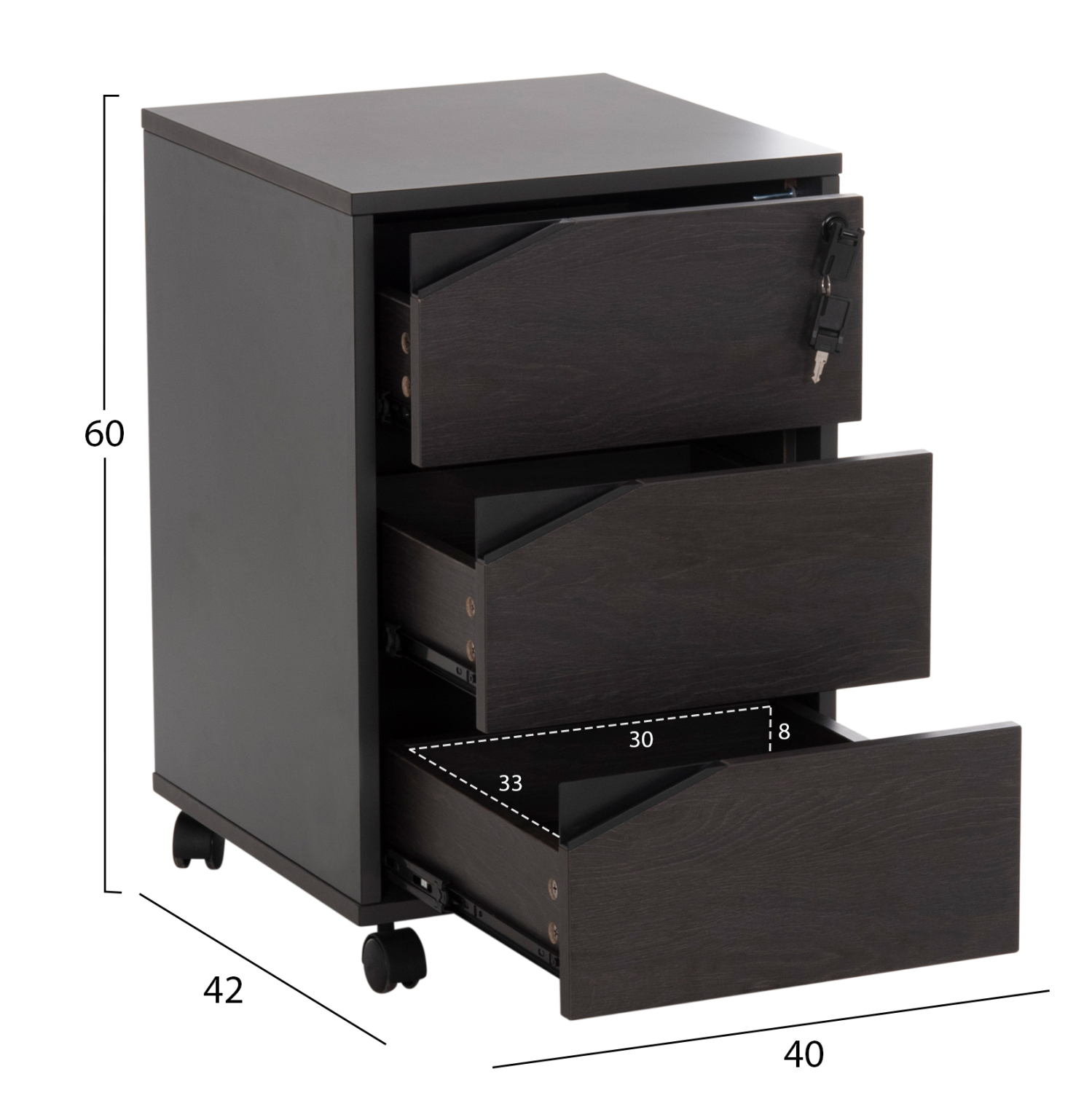 Τροχήλατη συρταριέρα γραφείου από μελαμίνη σε γκρι και βέγγε απόχρωση, με κλειδαριά, σε μοντέρνο design.