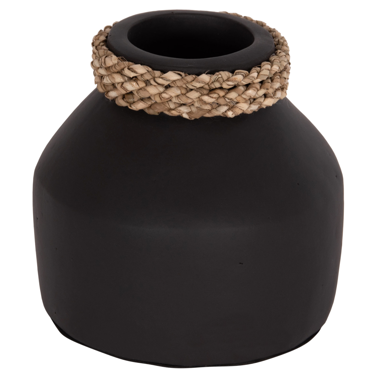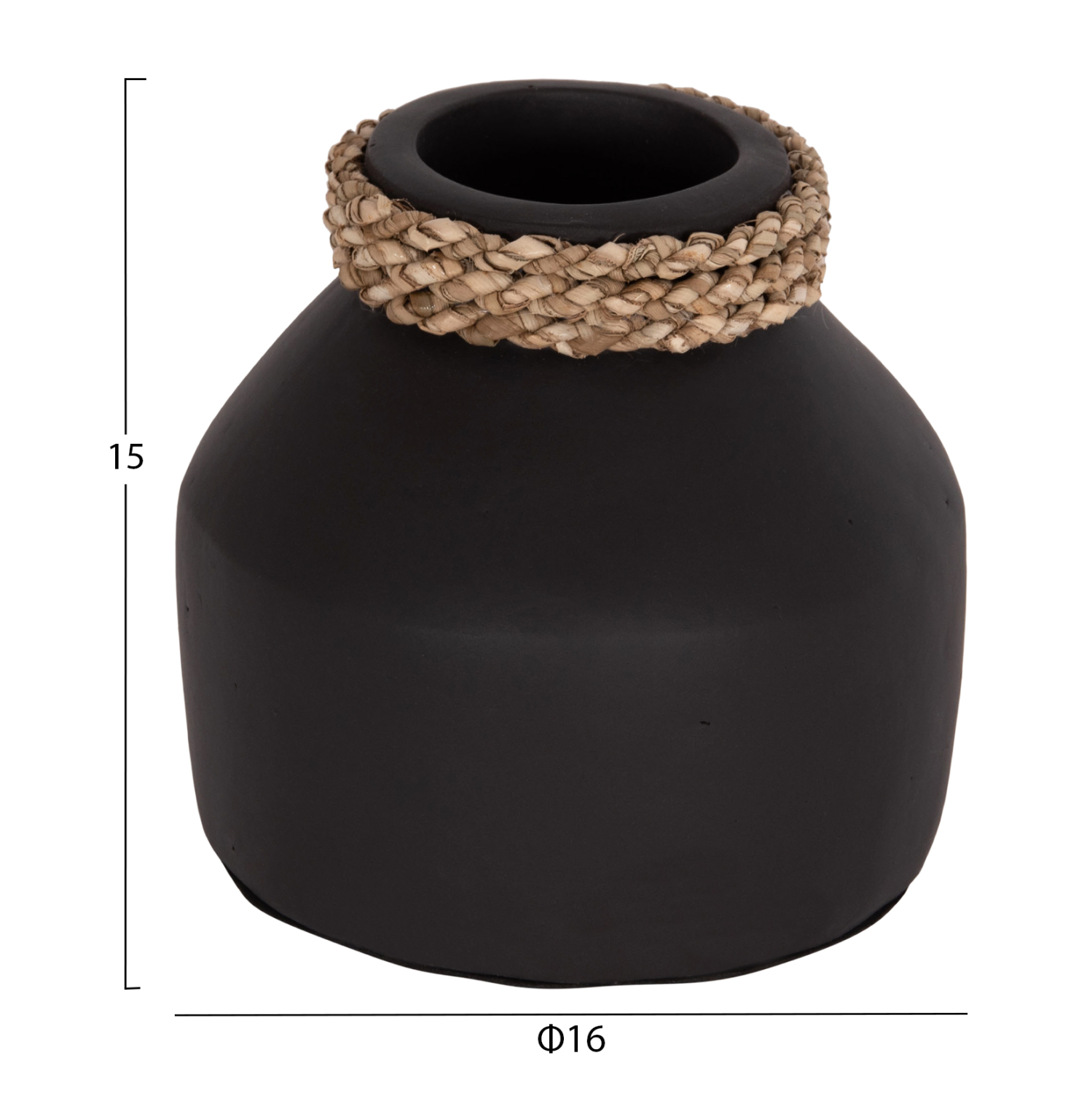 Το επιτραπέζιο χειροποίητο διακοσμητικό βάζο CAMMER είναι κατασκευασμένο εξολοκλήρου από τερακότα σε ΜΑΥΡΟ χρώμα ενώ διαθέτει διακοσμητική πλέξη από seagrass περιμετρικά στον «λαιμό» του βάζου. Ιδανικό για πληθώρα χώρων, τόσο για το σπίτι, όσο και για επαγγελματικούς χώρους.