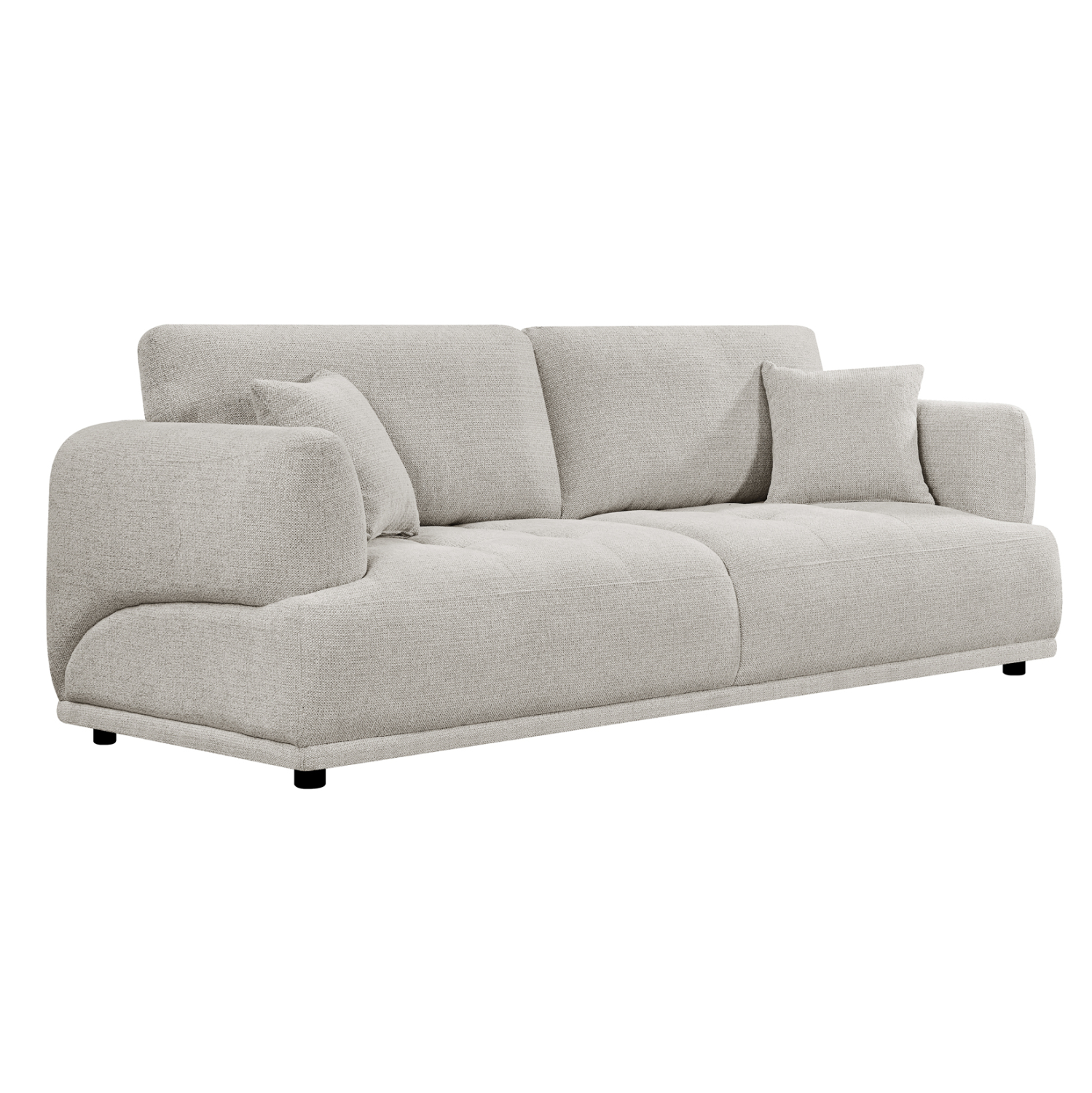 Ο καναπές STRUCTO αποτελεί μια κομψή και διαχρονική επιλογή για σύγχρονους χώρους καθιστικού. Ο λιτός αλλά επιβλητικός σχεδιασμός του, με καθαρές γραμμές και ψηλά φαρδιά μπράτσα, δημιουργεί μια αίσθηση άνεσης και ισορροπίας στον χώρο. Η επένδυση με ποιοτικό ανάγλυφο ύφασμα σε πολύ ΑΝΟΙΧΤΟ ΜΠΕΖ απόχρωση προσφέρει μοντέρνα αισθητική και ταιριάζει εύκολα με διαφορετικά στυλ διακόσμησης. Οι πλούσιες διαστάσεις του εξασφαλίζουν άνετο κάθισμα για τρία άτομα, ενώ τα δύο διακοσμητικά μαξιλάρια συμπληρώνουν ιδανικά την εμφάνιση και την άνεση.