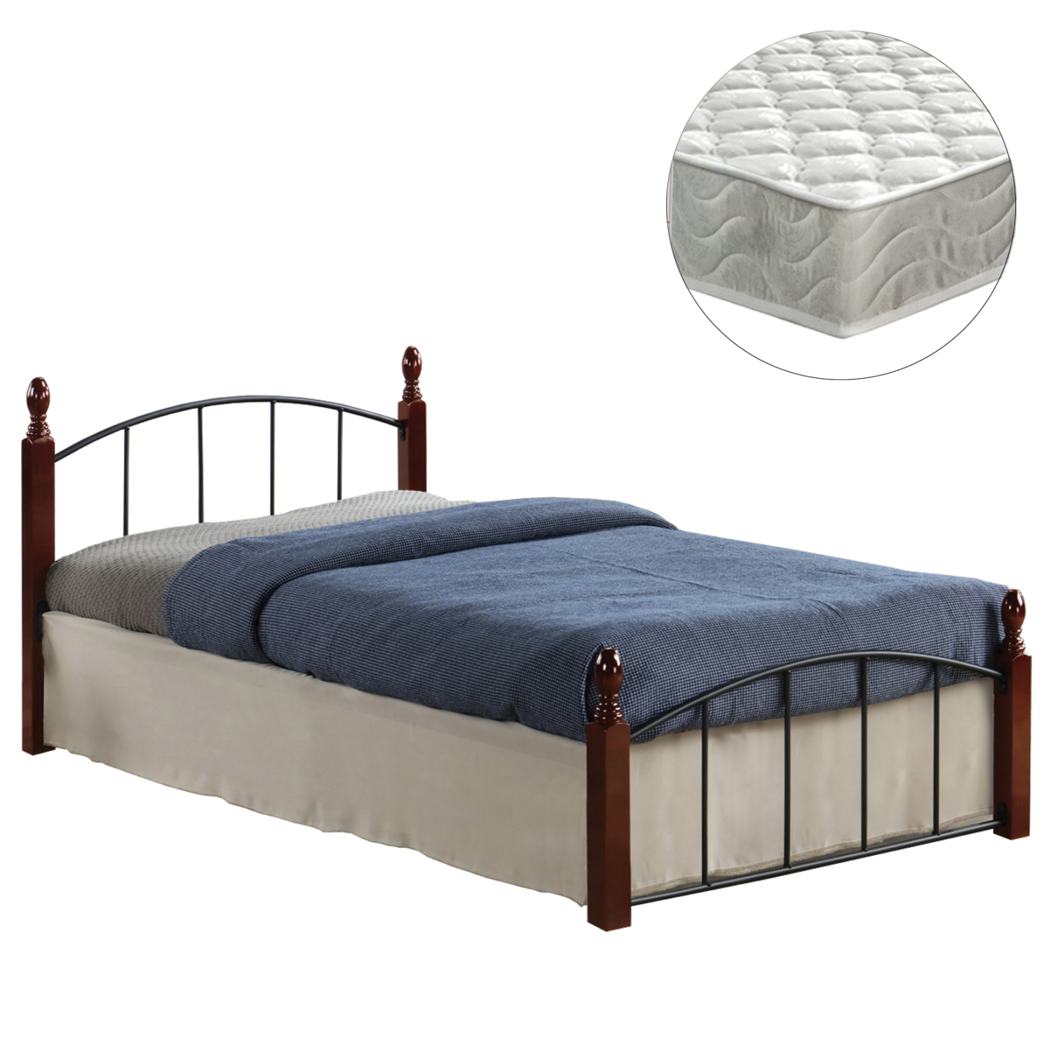 •Το κρεβάτι MAKAI σε διάσταση μονού στρώματος, είναι μια σύνθεση μετάλλου σε ΜΑΥΡΟ χρώμα και ξύλου σε απόχρωση ΚΑΡΥΔΙ. Τα 4 πόδια-κολώνες είναι τα ξύλινα κομμάτια της σύνθεσης, ενώ όλο το υπόλοιπο είναι μεταλλικό.