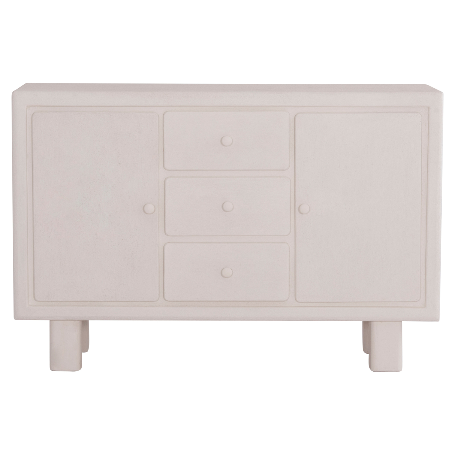 Ο χειροποίητος μπουφές αυτός είναι εξολοκλήρου κατασκευασμένος από MDF σε ΥΠΟΛΕΥΚΟ χρώμα με υφη σαγρέ τσιμέντου, που αποτελεί την πιο σύγχρονη τάση στον τομέα του interior design. Διαθέτει 3 συρτάρια στο κεντρικό μέρος και 2 αποθηκευτικούς χώρους δεξιά κι αριστερά που κλείνουν με πόρτες. Τι είναι όμως ο μπουφές;