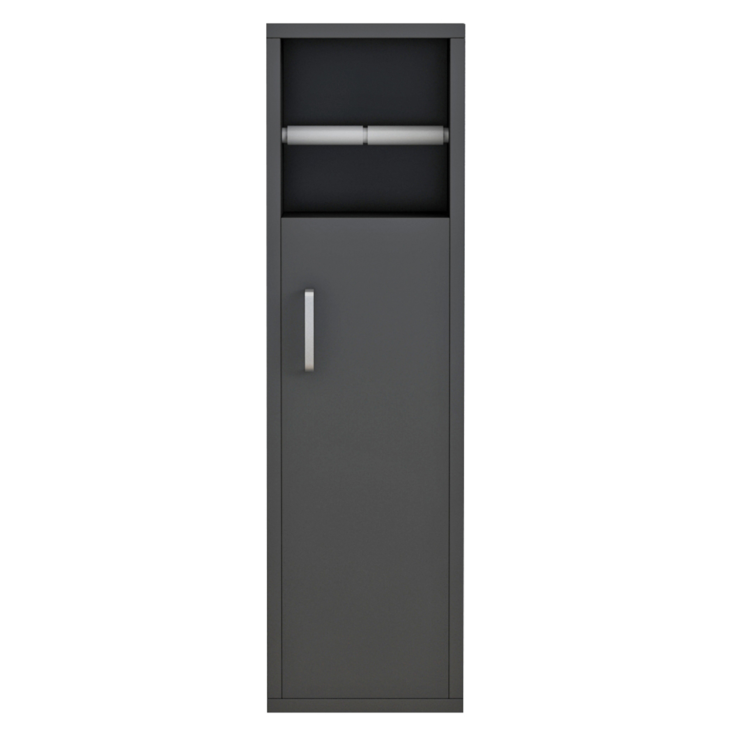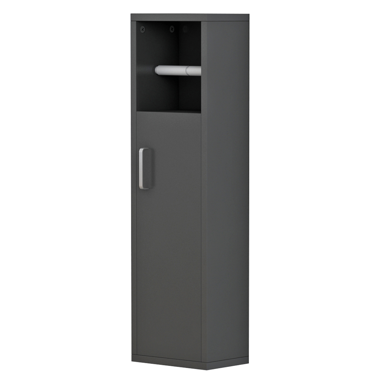 Το DAMIEN είναι ένα ντουλάπι σε ΑΝΘΡΑΚΙ χρώμα στενό με ενσωματωμένη θήκη για χαρτί υγείας στο επάνω μέρος. Πρόκειται για ένα πρακτικό έπιπλο που θα σας λύσει τα χέρια τόσο με τον αποθηκευτικό χώρο που διαθέτει, όσο και με τις βολικές του διαστάσεις. Επίσης, μπορείτε να το κρεμάσετε στον τοίχο για να προστατεύεται από την υγρασία του δαπέδου.