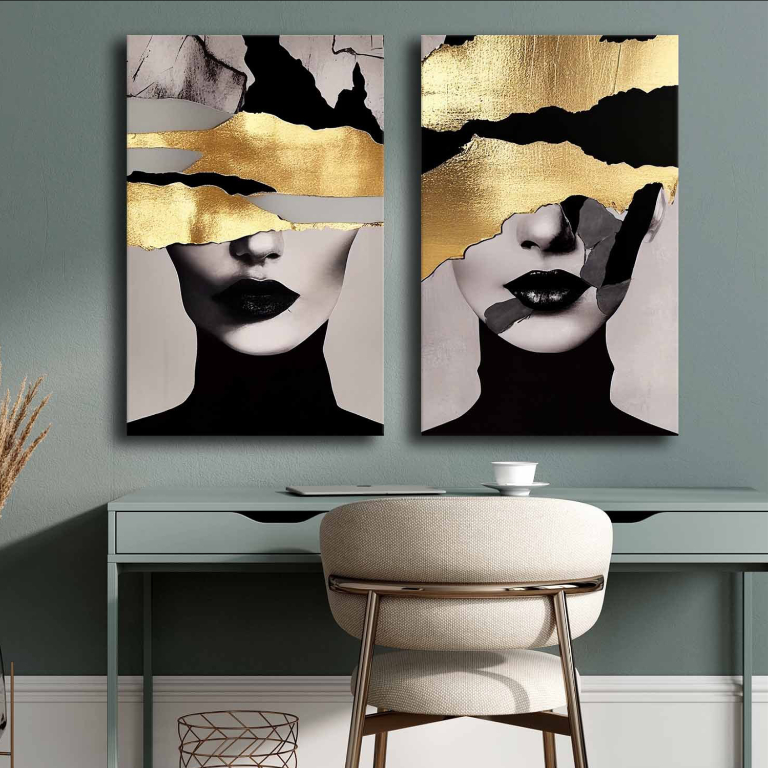 Οι πίνακες τοίχου μεταμορφώνουν τον τρόπο που αντιλαμβανόμαστε έναν χώρο. Διακοσμήστε, λοιπόν, τον χώρο σας με την καινούργια σειρά πινάκων τοίχου GOBI! Αυτοί οι πίνακες (2τμχ) με το χαρακτηριστικό χρυσό χρώμα σε μεγάλο μέρος τους απεικονίζουν γυναικεία πρόσωπα, και έχουν υλοποιηθεί σε εκτυπωμένο καμβά σε πλαίσιο από ξύλο πεύκου, και μπορείτε να τους τοποθετήσετε είτε μαζί, είτε σε διαφορετικά σημεία τον καθένα!