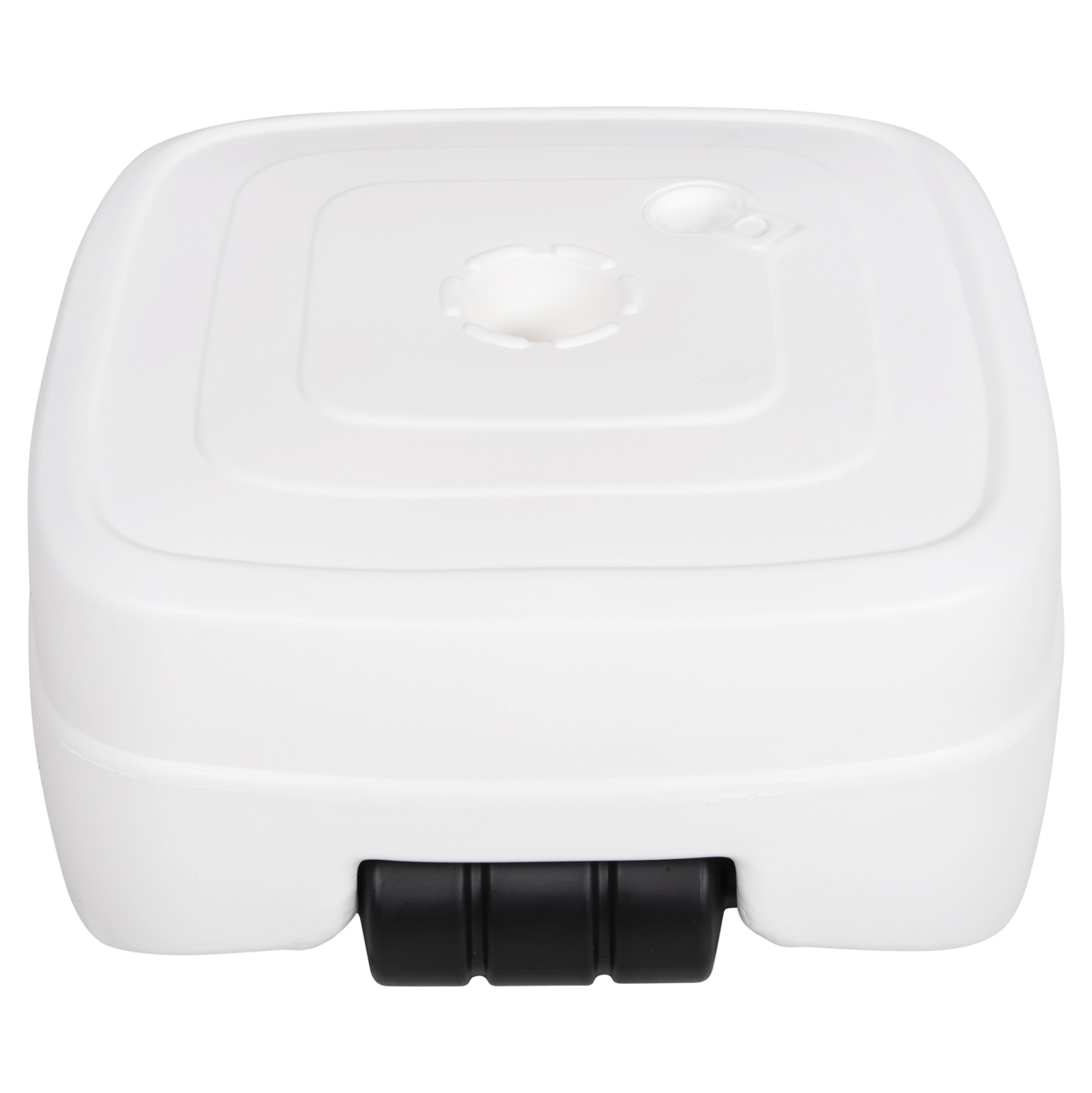 Η SOLBAS είναι η νέα προσθήκη στην γκάμα μας στην κατηγορία των βάσεων για ομπρέλες θαλάσσης. Πρόκειται για μια τετράγωνη πλαστική βάση σε ΛΕΥΚΟ χρώμα, που έχει όλα τα απαραίτητα χαρακτηριστικά που την κάνουν στιβαρή αλλά και πρακτική! Διαθέτει ρόδα μεταφοράς και φυσικά την ρυθμιζόμενη υποδοχή για κοντάρι ομπρέλας. Το κοντάρι θα πρέπει να είναι διαστάσεων 33/50mm.