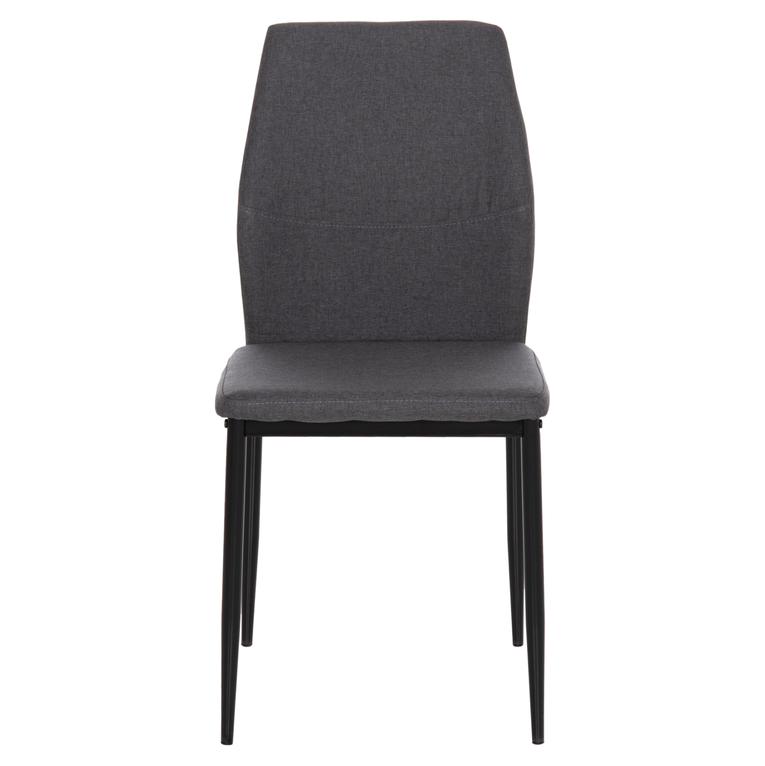 Ένα ορθογώνιο τραπέζι με σκελετό μεταλλικό σε ΜΑΥΡΟ χρώμα και κεραμική επιφάνεια με όψη ΓΚΡΙ ΜΑΡΜΑΡΟΥ, και 4 καρέκλες με πλάτη και κάθισμα με επένδυση από ύφασμα σε ΓΚΡΙ χρώμα και μεταλλικά πόδια σε ΜΑΥΡΟ χρώμα.