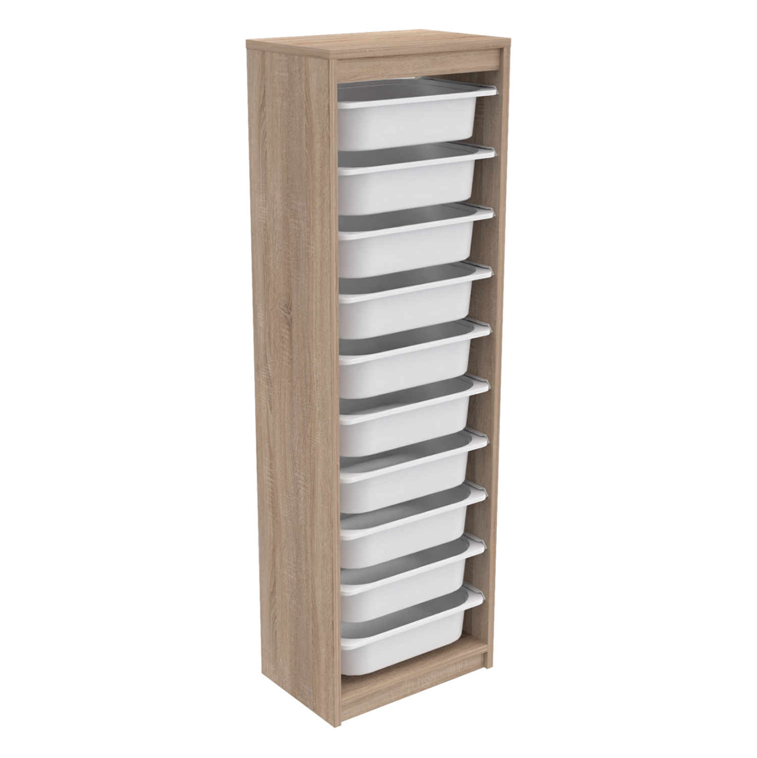 Η SANI είναι μια στενή και ψηλή συρταριέρα με πλαίσιο από μελαμίνη σε χρώμα SONAMA, και 10 ΛΕΥΚΑ συρτάρια από πολυαιθυλένιο (πλαστικό). Ιδανική συρταριέρα για την καλύτερη οργάνωση του παιδικού δωματίου.