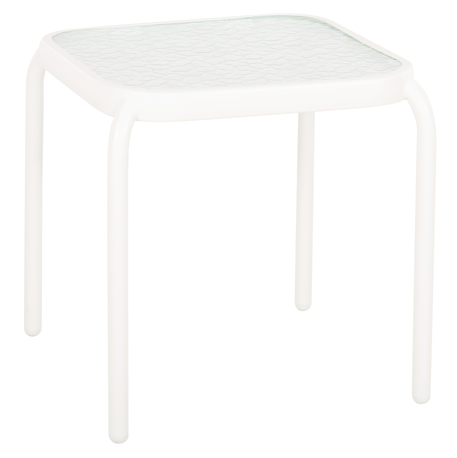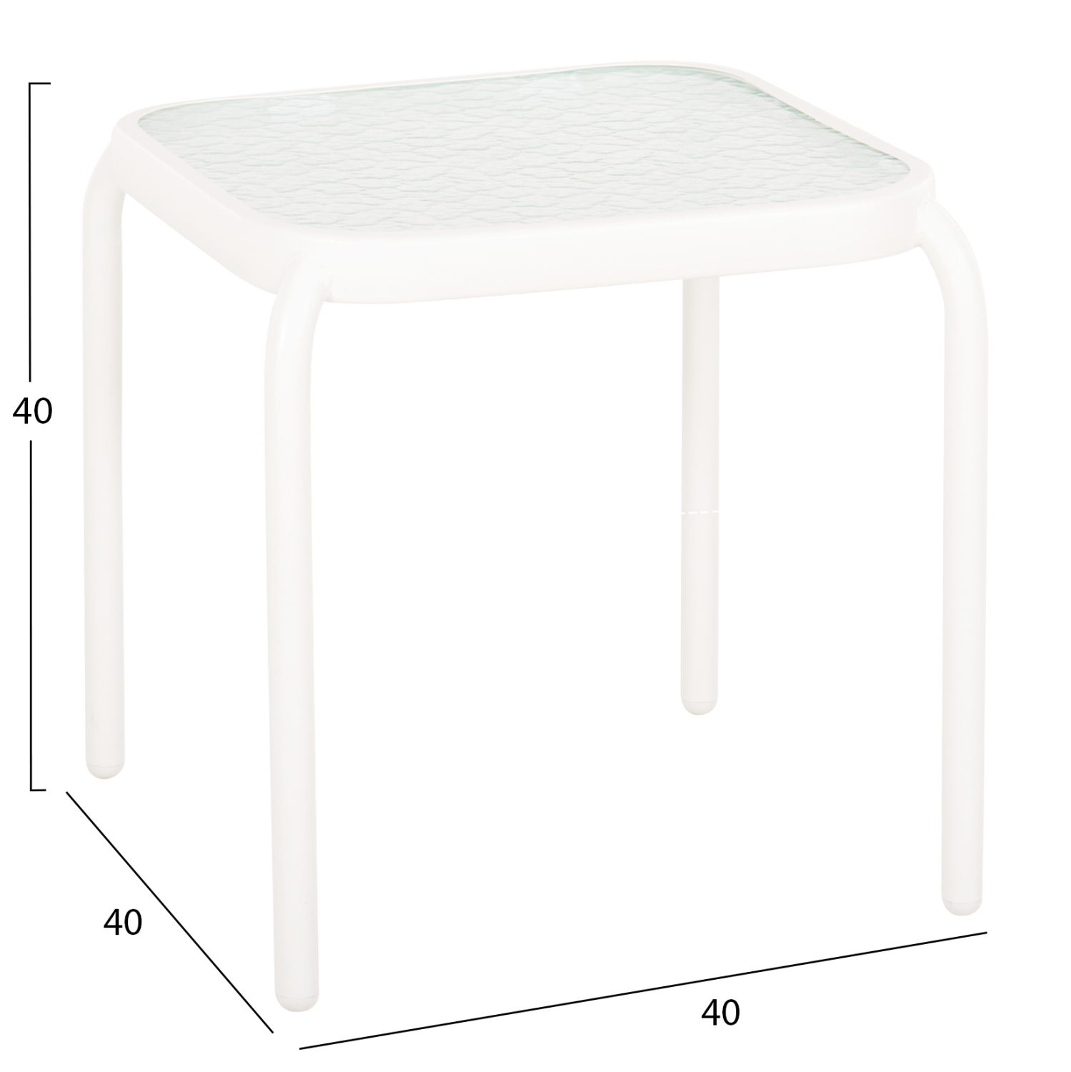 Το βοηθητικό τραπεζάκι εξωτερικού χώρου DIDO σε ΛΕΥΚΟ χρώμα είναι τετράγωνο με στρογγυλεμένες γωνίες και 4 κλασικά πόδια. Πρόκειται για ένα τραπεζάκι στο στυλ πολλών άλλων τραπεζιών που δεν λείπουν σχεδόν από κανέναν μπαλκόνι ή κήπο.
