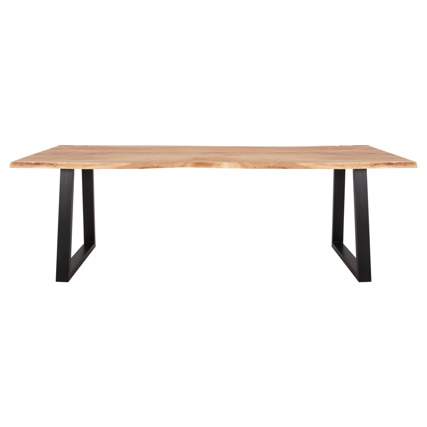 Το μοναδικό χειροποίητο τραπέζι ΜΟΝΤΑΝΑ διαθέτει επιφάνεια από φυσικό μασίφ ξύλο ΑΚΑΚΙΑΣ σε ΑΝΟΙΧΤΟ ΦΥΣΙΚΟ χρώμα. To σχήμα είναι ΑΚΑΝΟΝΙΣΤΟ ορθογώνιο και στηρίζεται σε δύο μαύρες μεταλλικές βάσεις με τραπεζοειδές σχήμα. Το μοντέρνο design συναντά την φύση και δίνει μια διαχρονική και ζεστή αίσθηση στον χώρο σας. Συνδυάστε τo με ένα ξύλινο παγκάκι ή μια καρέκλα με την ίδια αισθητική και αποκτήστε την τραπεζαρία που πάντα επιθυμούσατε.