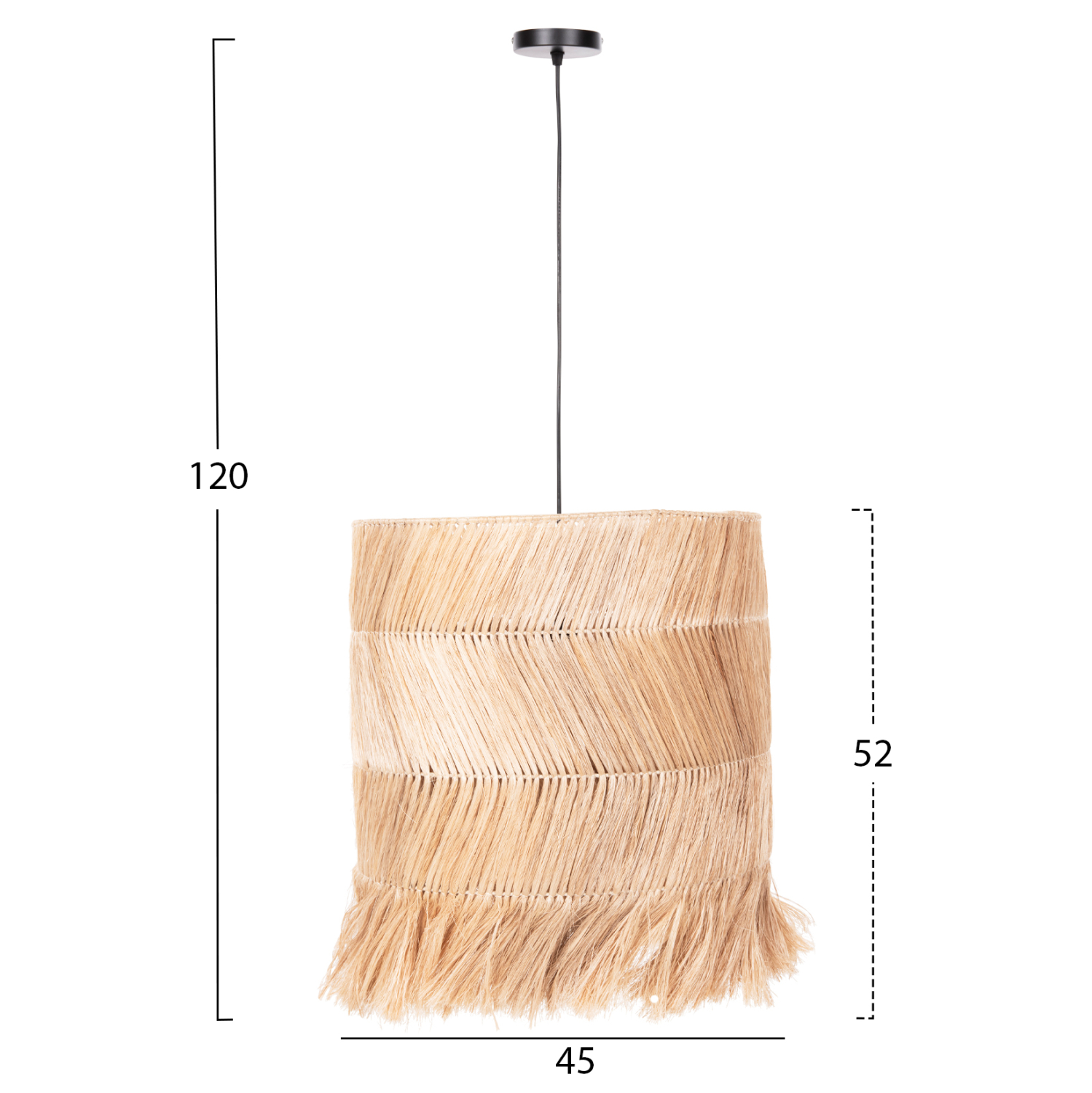Hm7781- Kρεμαστό φωτιστικό—- Αν επιθυμείτε να διακοσμήσετε το χώρο σας με ένα φωτιστικό σε boho στυλ, αυτό θα σας τραβήξει την προσοχή. Είναι ένα μονόφωτο φωτιστικό με μακρύ κυλινδρικό «καπέλο» φτιαγμένο από ίνες κάνναβης Μανίλας ή αλλιώς αμπακά, σε φυσικό χρώμα σε 3 σειρές με πλεκτή χιαστί διάταξη των ινών και κρόσια στο τελείωμα.