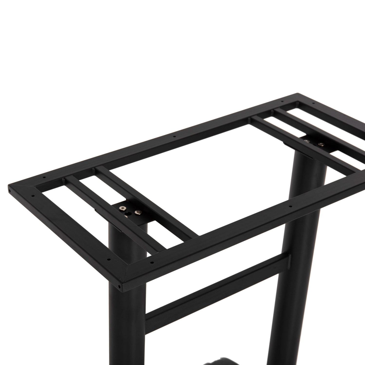 Η ΗΜ479.01 είναι βάση μεσαίου ύψους για τραπέζι bar σε ΜΑΥΡΟ χρώμα. Αυτή η βάση είναι μεταλλική με 2 κολώνες που στηρίζονται σε δύο ελαφρώς αψιδωτά πέλματα. Αυτές οι κολώνες καταλήγουν στην βάση στήριξης της επιφάνειας που είναι ορθογώνια. Επίσης, στο κάτω μέρος της διαθέτει ρυθμιστές ύψους (ρεγουλατόρους). Ιδανική πρόταση για συνδυασμό με επιφάνειες σχεδόν κάθε είδους, όπως βερσαλίτες, HPL, MDF, κτλ.