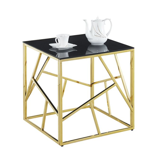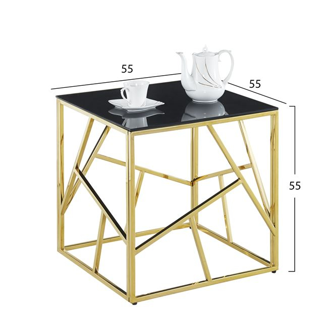 Το ΗΜ8619.01 είναι ένα τετράγωνο βοηθητικό τραπεζάκι κυρίως για το χώρο του σαλονιού. Στηρίζεται σε έναν ΕΠΙΧΡΥΣΟ τετράγωνο μεταλλικό σκελετό με ακανόνιστες μεταλλικές βέργες και η επιφάνεια είναι ΜΑΥΡΟ γυαλί ασφαλείας. Αυτό το τραπέζι θα αναβαθμίσει αισθητικά το σαλόνι σας ενώ μπορεί να ταιριάξει με πολλά διαφορετικά στυλ και χρώματα στον τριγύρω χώρο. Η πρακτικότητα του φυσικά είναι αδιαμφισβήτητη και είναι σίγουρο ότι θα τραβήξει την προσοχή.
