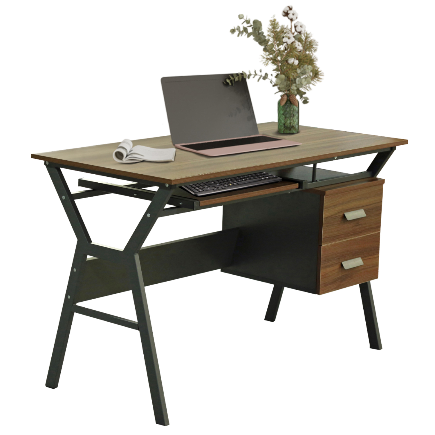 Το VITINO είναι λιτό και διαθέτει δύο συρτάρια στην δεξιά πλευρά και μια συρταρωτή θέση για πληκτρολόγιο υπολογιστή κάτω από την κύρια επιφάνεια .