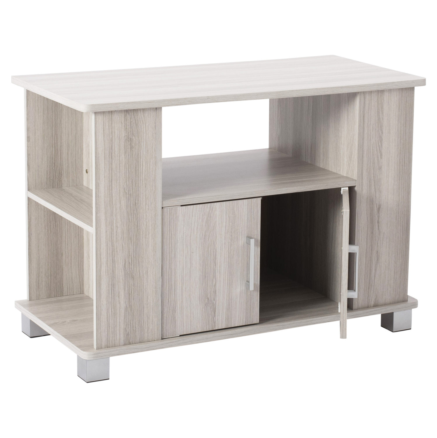 Μοντέρνο έπιπλο τηλεόρασης κατασκευασμένο από μελαμίνη, σε σταχτί απόχρωση.
