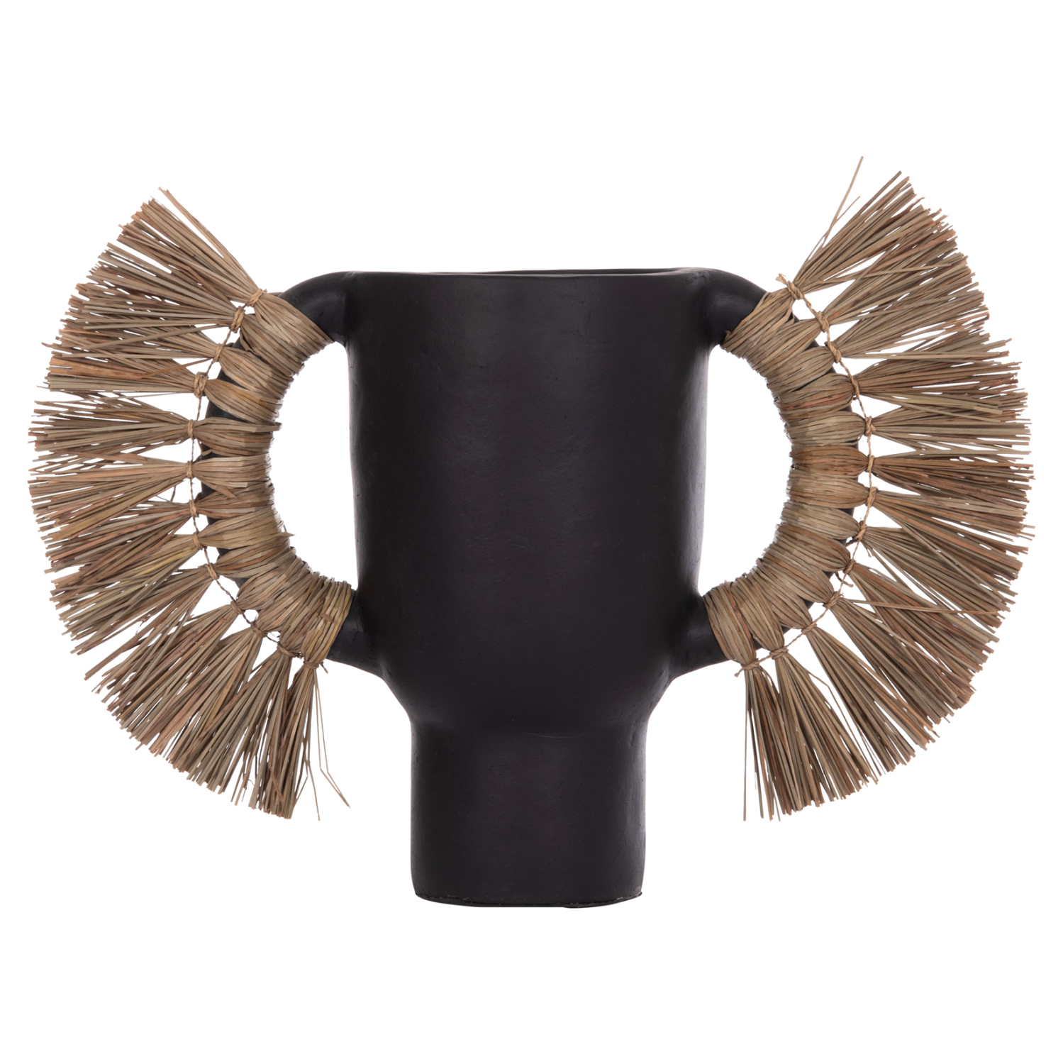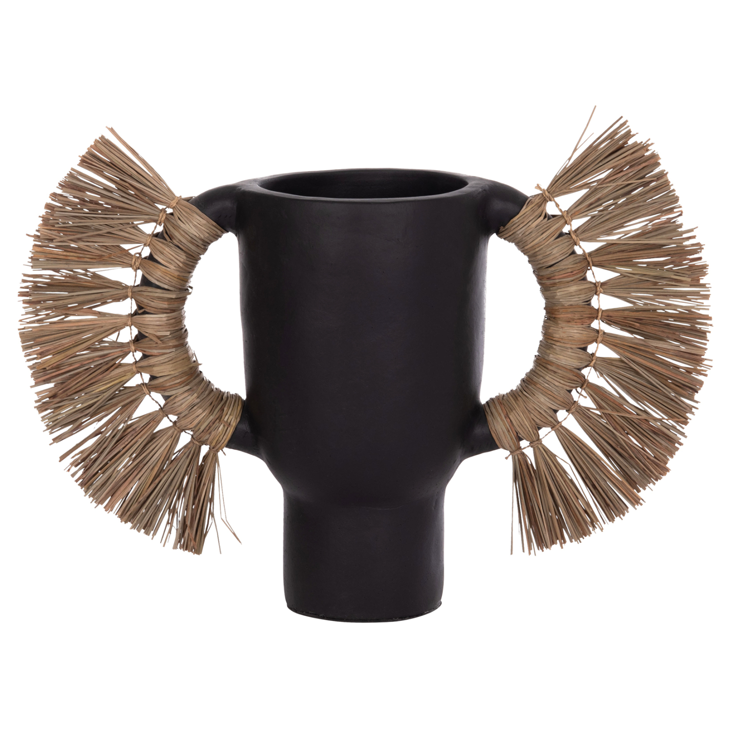 Το επιτραπέζιο χειροποίητο διακοσμητικό βάζο ALICA είναι ένα πολύ ιδιαίτερο διακοσμητικό στοιχείο για κάθε χώρο. Είναι κατασκευασμένο εξολοκλήρου από τερακότα σε ΜΑΥΡΟ χρώμα, ενώ διαθέτει και δύο χερούλια επενδυμένα με αποξηραμένο grass, και ένα φαρδύ στόμιο.