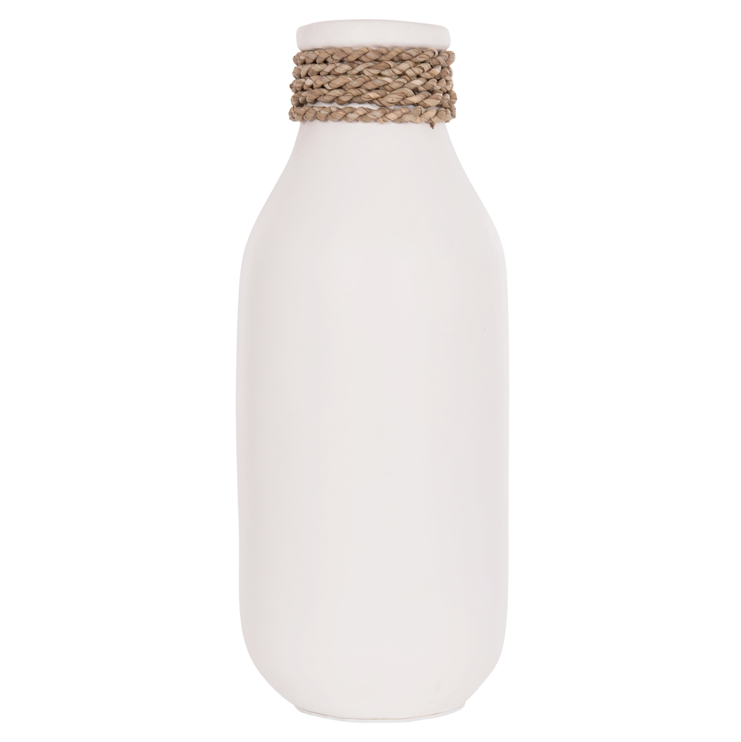 Το επιτραπέζιο χειροποίητο διακοσμητικό βάζο CAMMER έχει σχήμα μποτίλιας και είναι κατασκευασμένο εξολοκλήρου από τερακότα σε ΛΕΥΚΟ χρώμα ενώ διαθέτει διακοσμητική πλέξη από seagrass στον «λαιμό» ακριβώς κάτω από το στόμιο. Ιδανικό για πληθώρα χώρων, τόσο για το σπίτι, όσο και για επαγγελματικούς χώρους.