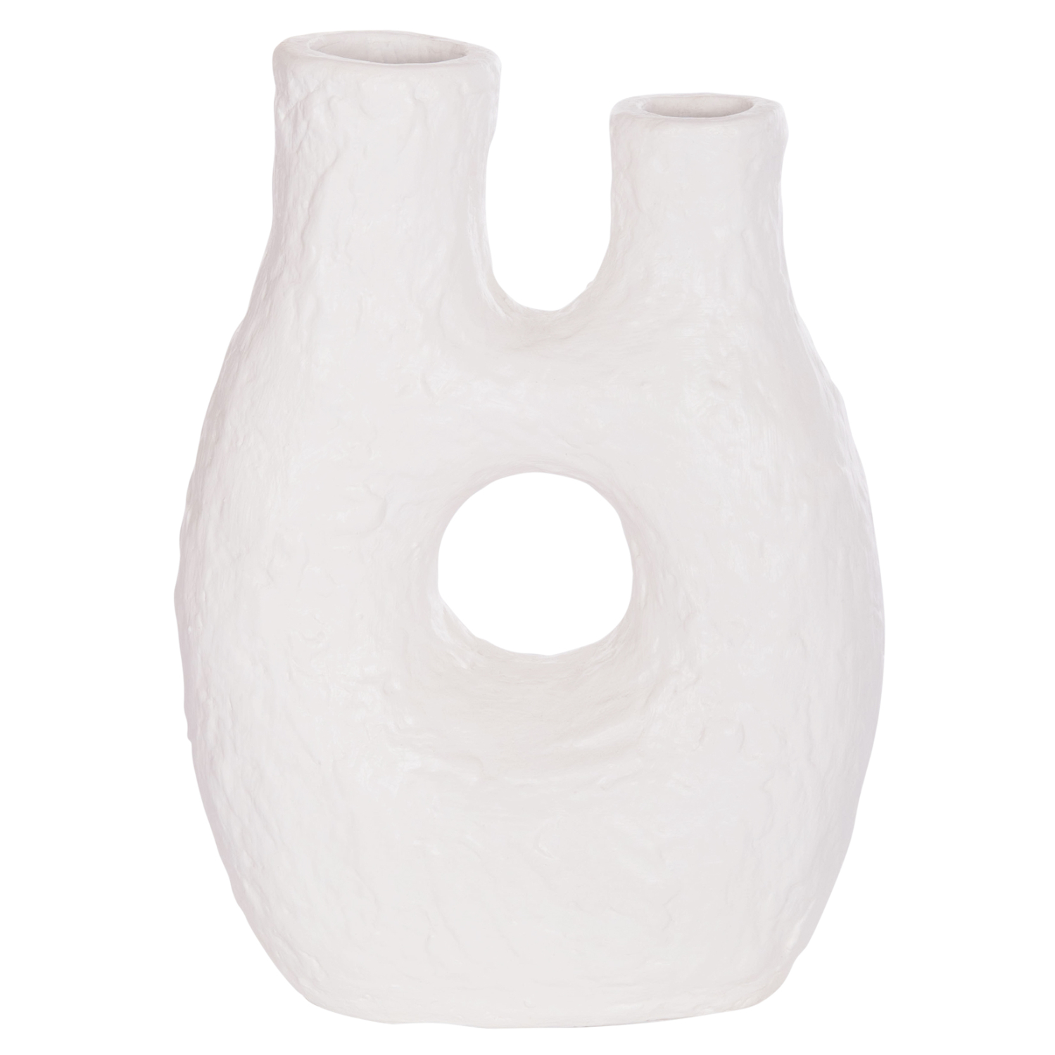 Το χειροποίητο επιτραπέζιο διακοσμητικό βάζο NAMENTIS με δύο στόμια είναι ένα πολύ ιδιαίτερο διακοσμητικό στοιχείο για κάθε χώρο. Είναι κατασκευασμένο εξολοκλήρου από τερακότα με σαγρέ υφή σε ΛΕΥΚΟ χρώμα, ακολουθώντας την σύγχρονη τάση στην εσωτερική διακόσμηση. Ιδανικό για πληθώρα χρήσεων και χώρων.