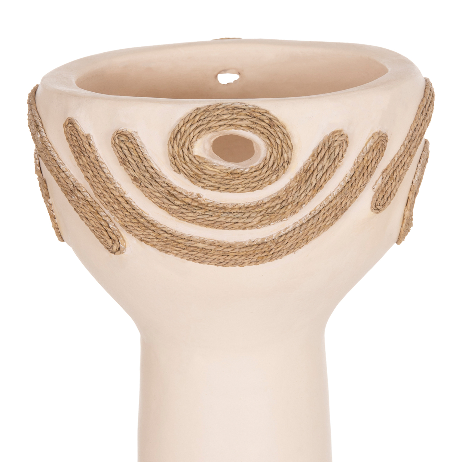 Το DEAN είναι ένα εντυπωσιακό διακοσμητικό βάζο σε σχήμα ψηλού κυπέλλου που προσθέτει χαρακτήρα και ένταση σε κάθε χώρο. Η τερακότα σε χρώμα ΚΡΕΜ δημιουργεί μια απαλή και φωτεινή, γήινη παρουσία, ενώ η διακόσμηση με σχοινί agel πλευρικά προσφέρει φυσική υφή και αυθεντικό, χειροποίητο ύφος. Ιδανικό για κονσόλες, τραπέζια ή επαγγελματικούς χώρους που αναζητούν ιδιαίτερες λεπτομέρειες με premium αισθητική.