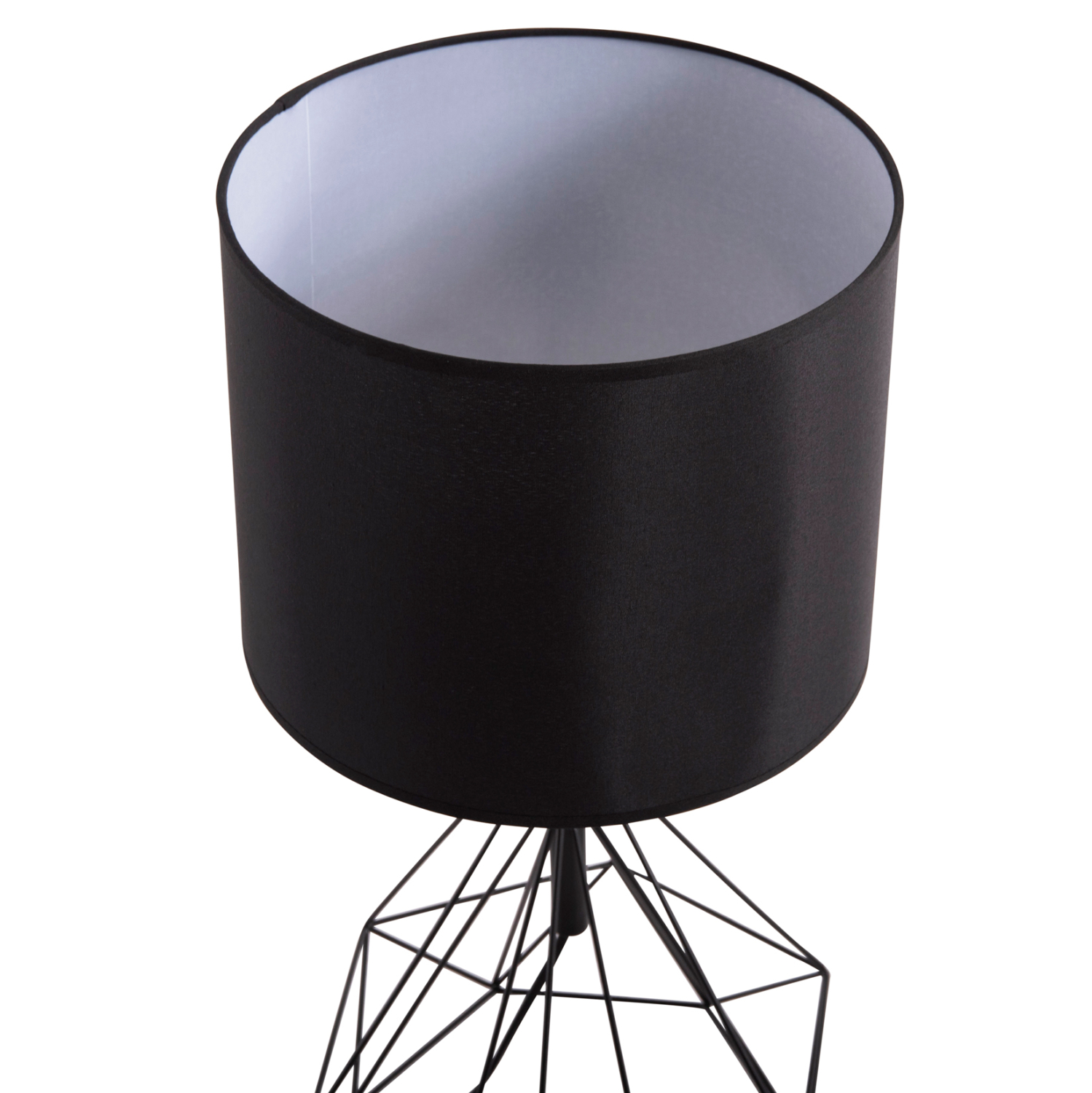 Φινέτσα και μοντέρνα γραμμή συναντώνται σε αυτό το επιτραπέζιο φωτιστικό. Βάση και κολώνα έχουν δώσει την θέση τους όμορφα σε ένα μαύρο μεταλλικό πλέγμα σε σχήμα πολύγωνης πυραμίδας και στην κορυφή του κάθεται το μαύρο κυλινδρικό καπέλο, δημιουργώντας ένα σύνολο που είναι η επιτομή του μοντέρνου design εσωτερικών χώρων. Ειδικά, το μαύρο χρώμα του τυμπάνου πραγματικά δίνει την εντύπωση της πολυτέλειας χωρίς όριο. Αυτό το φωτιστικό είναι λιτό, κομψό και βολικό σε διαστάσεις παρέχοντας αμέτρητες δυνατότητες «δεσίματος» με την υπόλοιπη διακόσμησή σας. Εκτός από διάφορα δωμάτια του σπιτιού σας, μπορεί, επίσης, να ταιριάξει και σε επαγγελματικούς χώρους όπως εστιατόρια, καφέ, ξενοδοχεία κτλ.