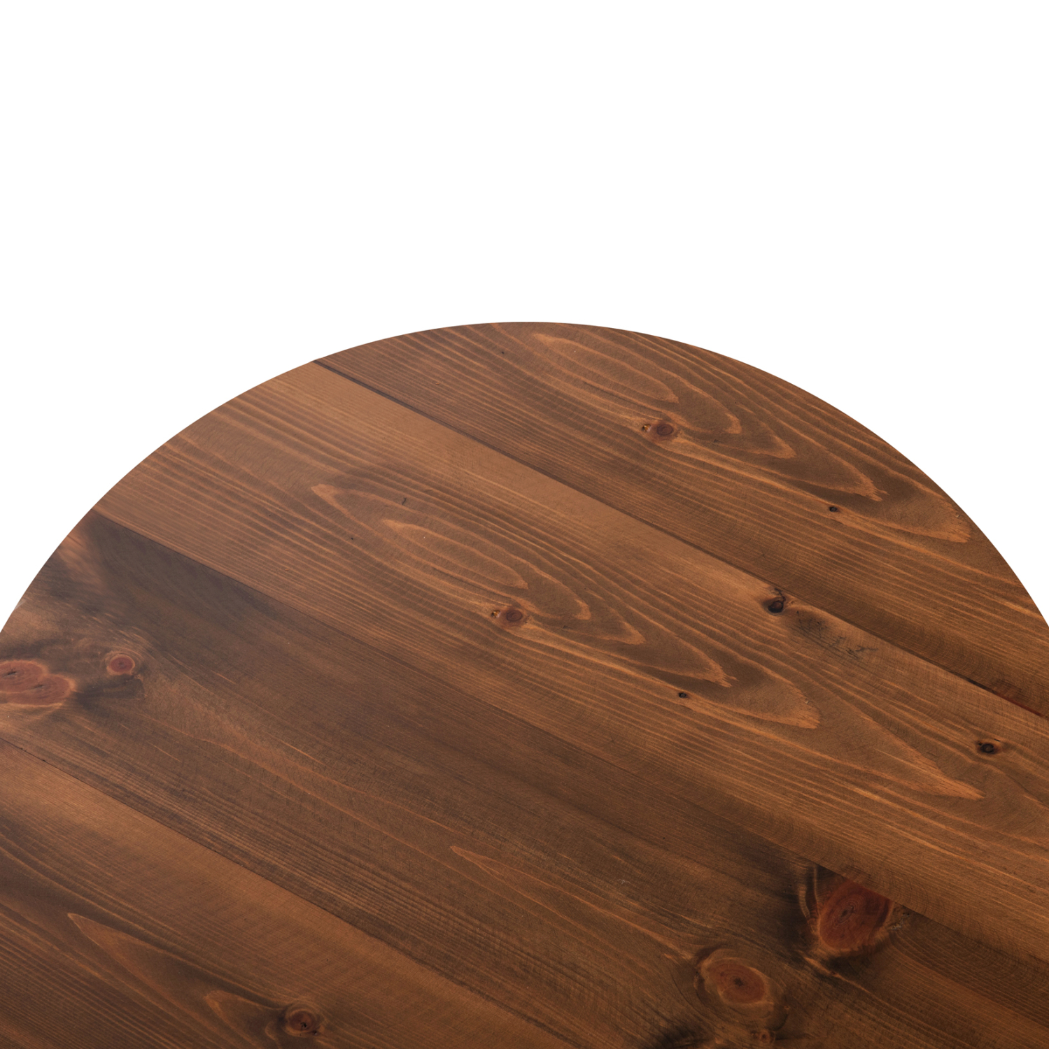 Επαγγελματική στρογγυλή επιφάνεια τραπεζιού, κατασκευασμένη από μασίφ ξύλο έλατου σε ΚΑΡΥΔΙ χρώμα με ειδικό βερνίκι για εξωτερικούς χώρους για μεγαλύτερη προστασία από τις καιρικές συνθήκες. Μπορεί να χρησιμοποιηθεί σε καφετέριες, εστιατόρια, και τουριστικά καταλύματα, κυρίως σε εσωτερικούς χώρους.