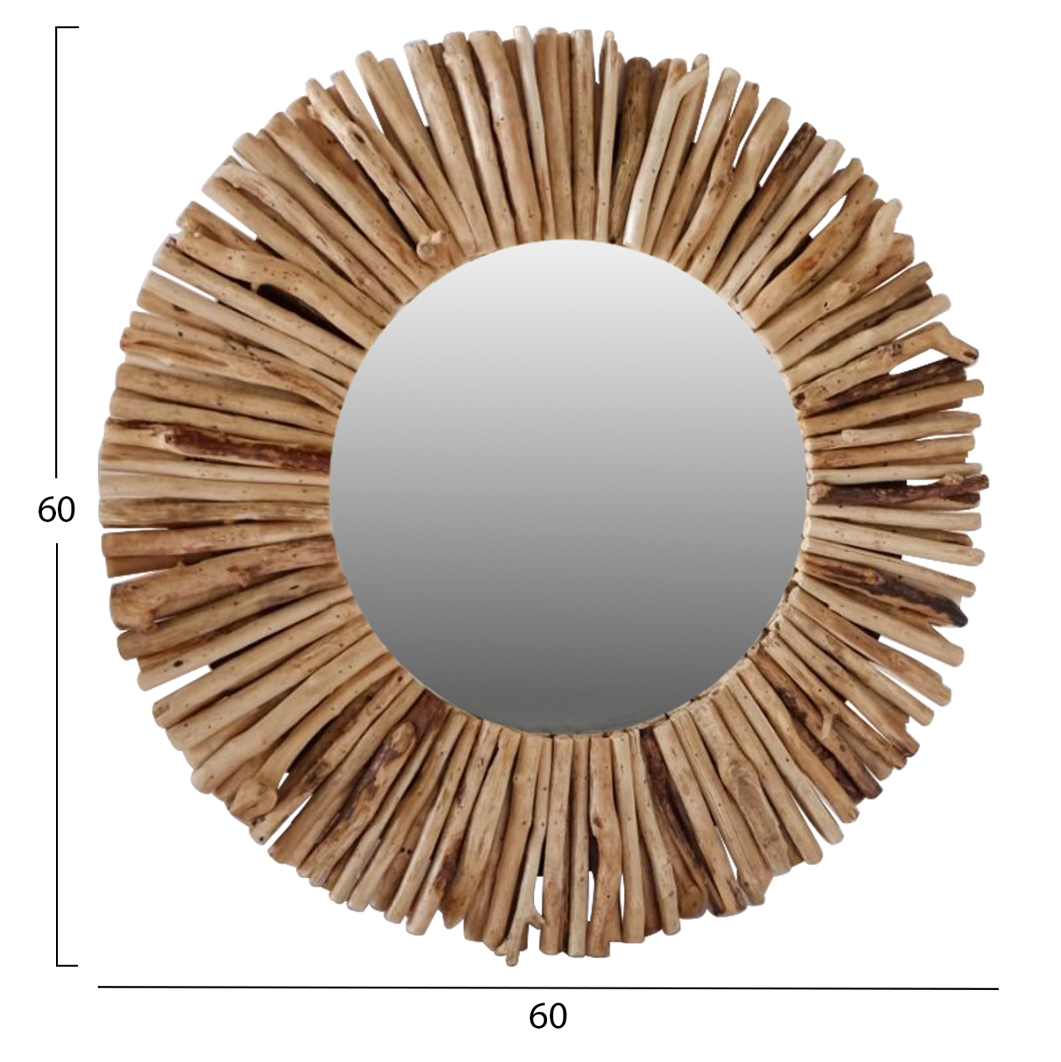 O καθρέπτης ΗΜ7720 είναι πραγματικά ένα εντυπωσιακό κομμάτι στην διακόσμηση του σπιτιού σας! Το design του είναι μοναδικό με την αριστοτεχνικά κατασκευασμένη κυκλική διάταξη των θαλασσόξυλων, τα οποία στο κέντρο τους «φιλοξενούν» τον καθρέπτη. Τα ξύλα είναι στο φυσικό τους χρώμα και οι διαστάσεις όλης της κατασκευής είναι ικανοποιητικές.