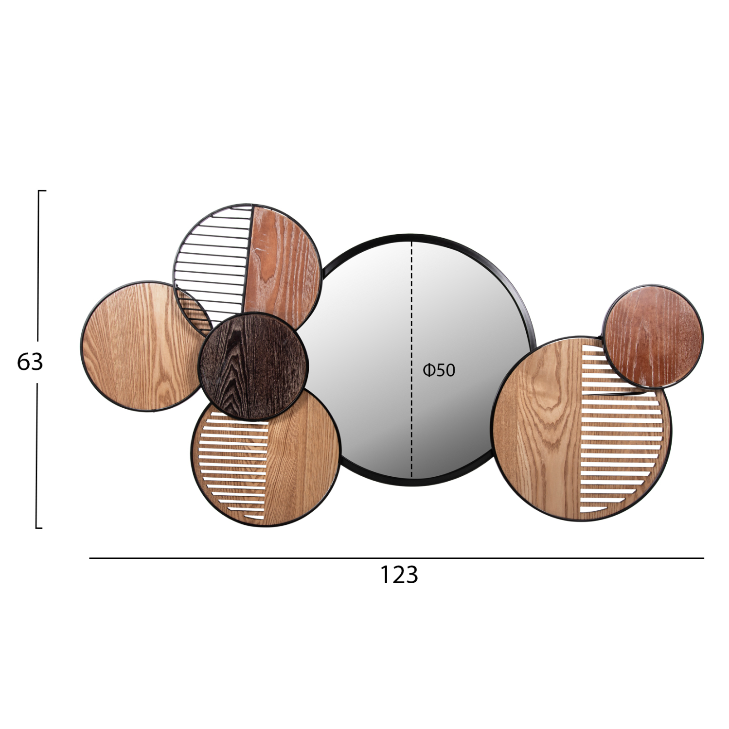 O καθρέπτης DAVION είναι πραγματικά ένα όμορφο κομμάτι στην διακόσμηση του σπιτιού σας! Πρόκειται για έναν στρογγυλό καθρέπτη σε ΜΑΥΡΟ μεταλλικό δακτύλιο πλαισιωμένο από 6 κύκλους σε διάφορα μεγέθη και σε γήινα χρώματα. Γενικά, ο καθρέπτης είναι ένα από τα αναγκαία αντικείμενα για ένα σπίτι, αλλά είναι ιδανικός και για ξενοδοχεία, Airbnb, ή χώρους εστίασης ως διακοσμητικό στοιχείο!