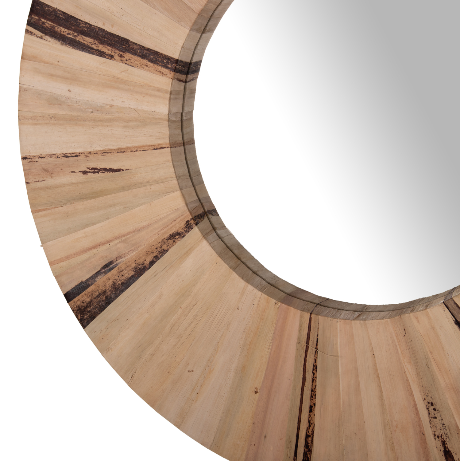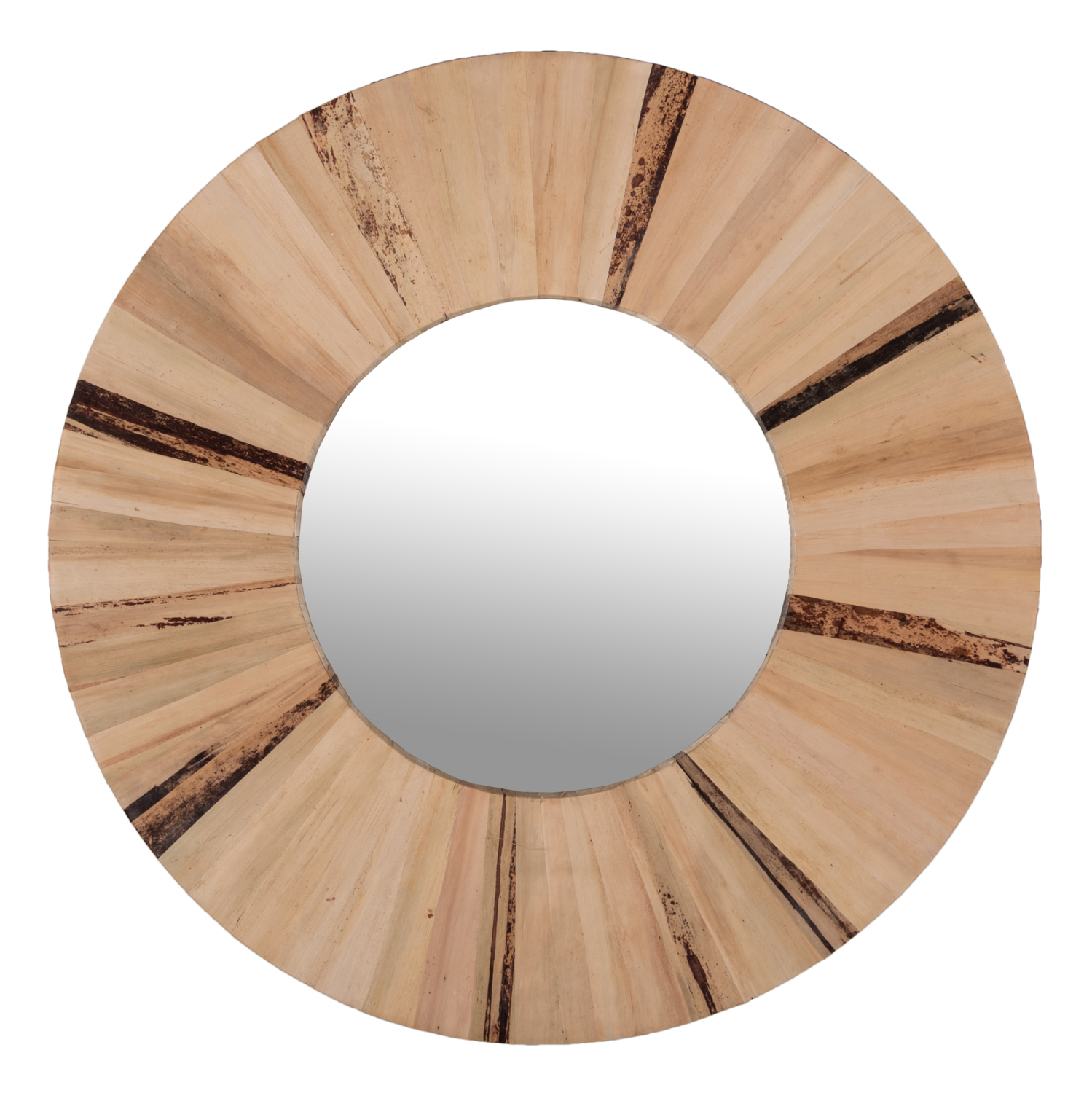 O καθρέπτης ΗΜ7838 από την νέα γκάμα των προϊόντων μας, είναι πραγματικά ένα εντυπωσιακό κομμάτι στην διακόσμηση του χώρου σας! Το design του είναι μοναδικό με το αριστοτεχνικά κατασκευασμένο στρογγυλό πλαίσιο από αποξηραμένες ίνες φύλλων φοίνικα τα οποία δίνουν πλέον μια ξυλώδη αίσθηση. Οι ίνες (τα φύλλα) είναι στο φυσικό τους χρώμα και οι διαστάσεις του καθρέπτη είναι πλούσιες.