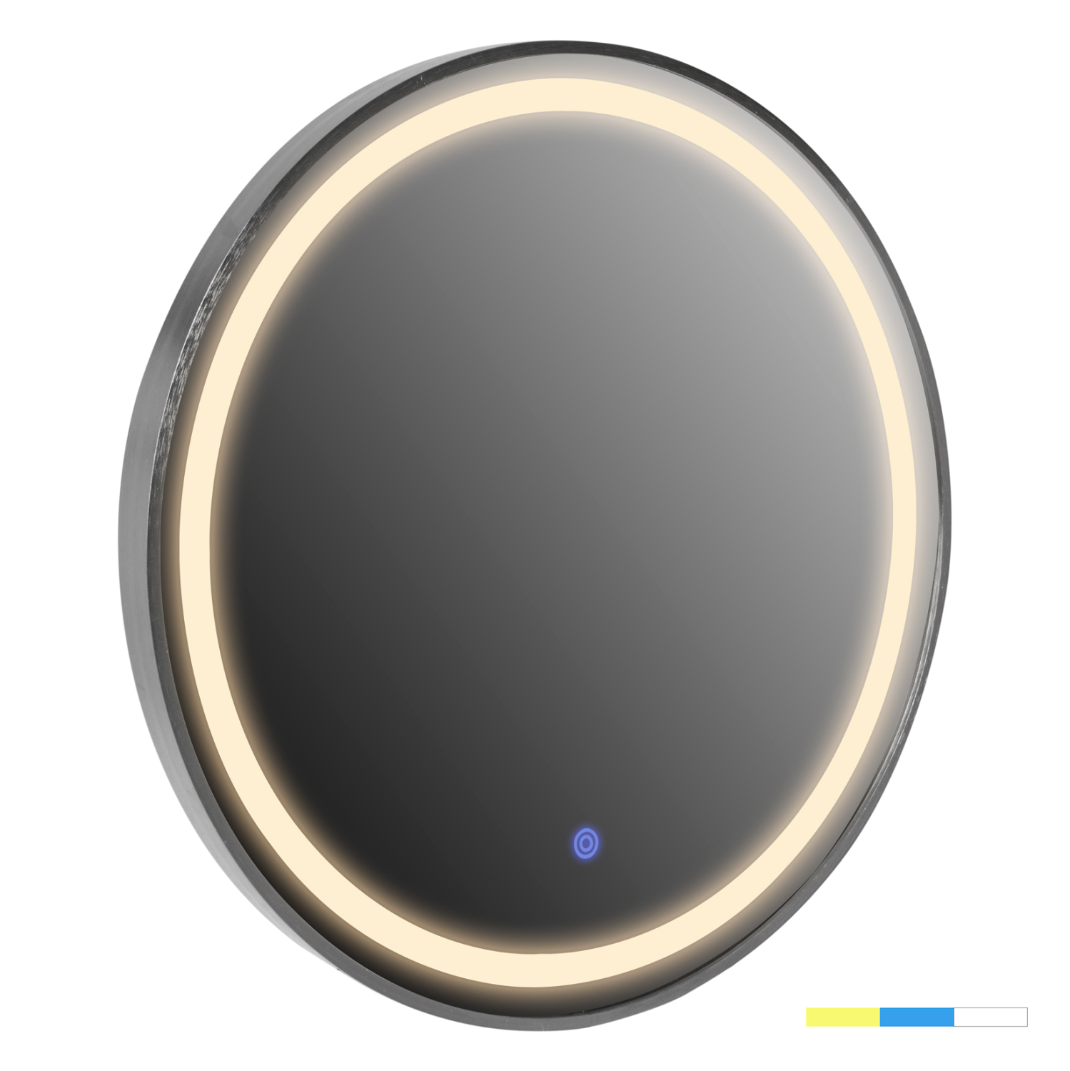 Ο ROUNDER είναι ένας στρογγυλός καθρέφτης τοίχου με ΑΣΗΜΙ πλαίσιο, κομψός και σε σχετικά μεγάλη διάσταση. Ωστόσο, αυτό που τον διαφοροποιεί σε σχέση με τους απλούς καθρέπτες είναι ότι διαθέτει φωτισμό LED ενσωματωμένο σε κυκλική διάταξη ακολουθώντας την «γραμμή» του πλαισίου. Ο φωτισμός ενεργοποιείται με ένα διακόπτη αφής στο εμπρός και κάτω μέρος του καθρέπτη, ενώ παράγει 3 διαφορετικά χρώματα φωτός. Ζεστό (κιτρινωπό), ελαφρύ μπλέ, και φυσικό λευκό, που ενεργοποιούνται πατώντας τον ίδιο διακόπτη αφής. Ένα χρήσιμο «εργαλείο» κυρίως για το μπάνιο αλλά και για οποιοδήποτε άλλο χώρο χρειάζεστε έναν καθρέπτη με φωτισμό!