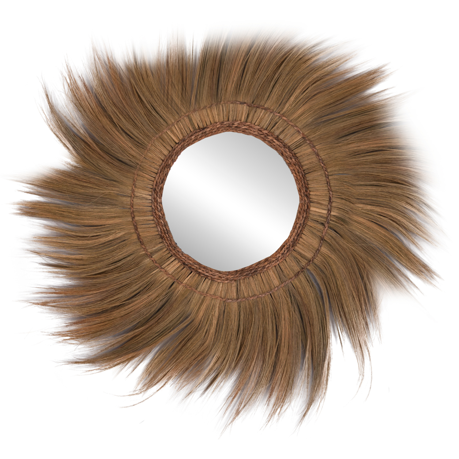 O καθρέπτης ΗΜ7734 είναι πραγματικά ένα εντυπωσιακό κομμάτι στην διακόσμηση του χώρου σας! Το design του είναι μοναδικό με το αριστοτεχνικά κατασκευασμένο πλαίσιο από ίνες φλοιού μπανάνας, το οποίο στο κέντρο του «φιλοξενεί» τον καθρέπτη. Οι ίνες είναι στο φυσικό τους χρώμα και οι διαστάσεις όλης της κατασκευής είναι μεγάλες.