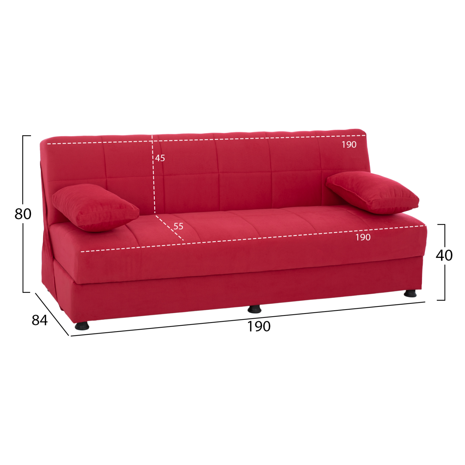 Πτυσσόμενος καναπές-κρεβάτι κατάλληλος για το καθιστικό ή το δωμάτιό σας, με αποθηκευτικό χώρο που θα βρει κανείς ανασηκώνοντας τη βάση του καναπέ.