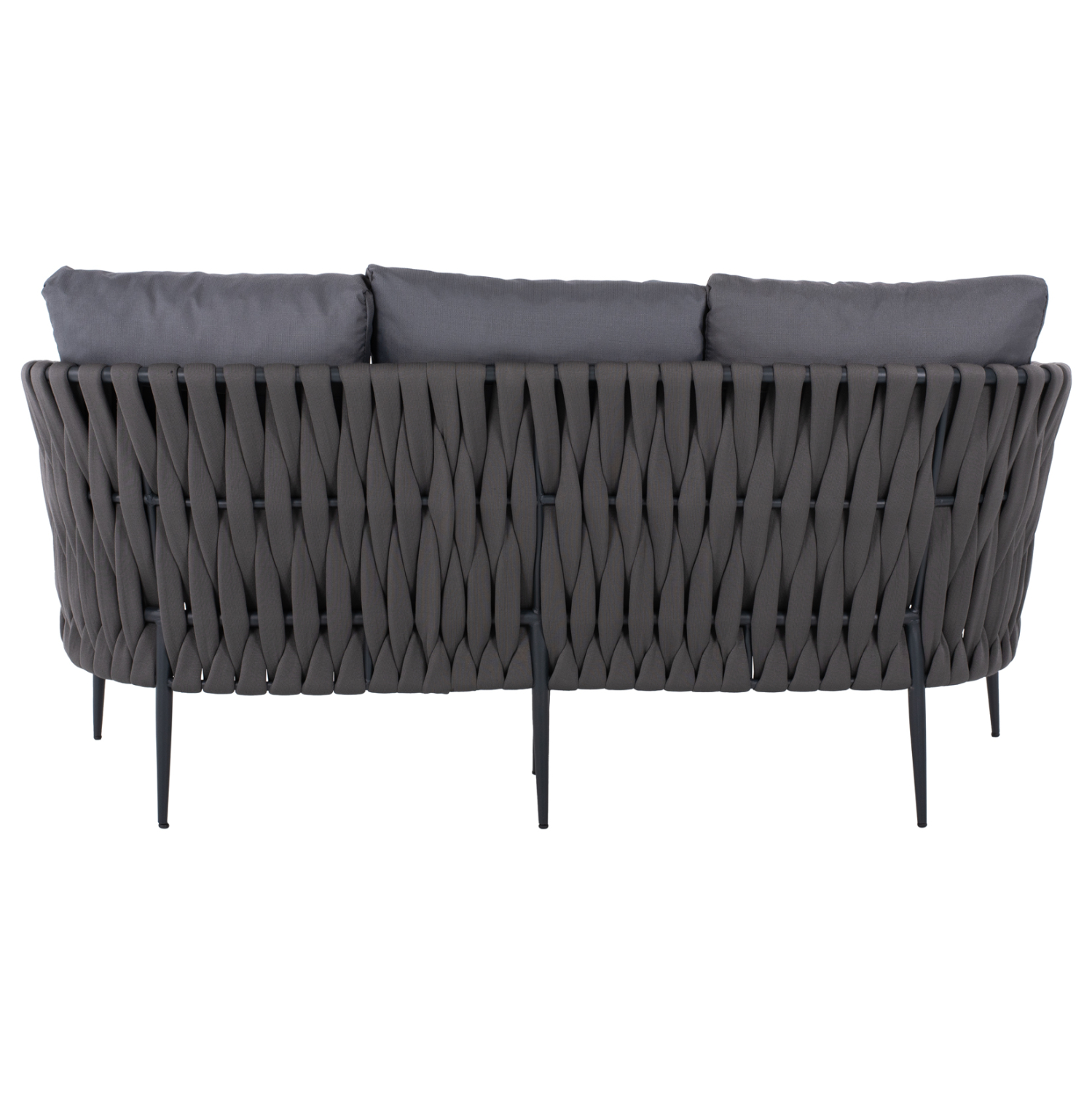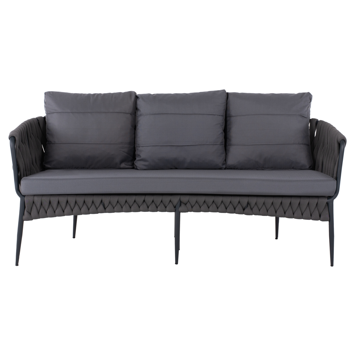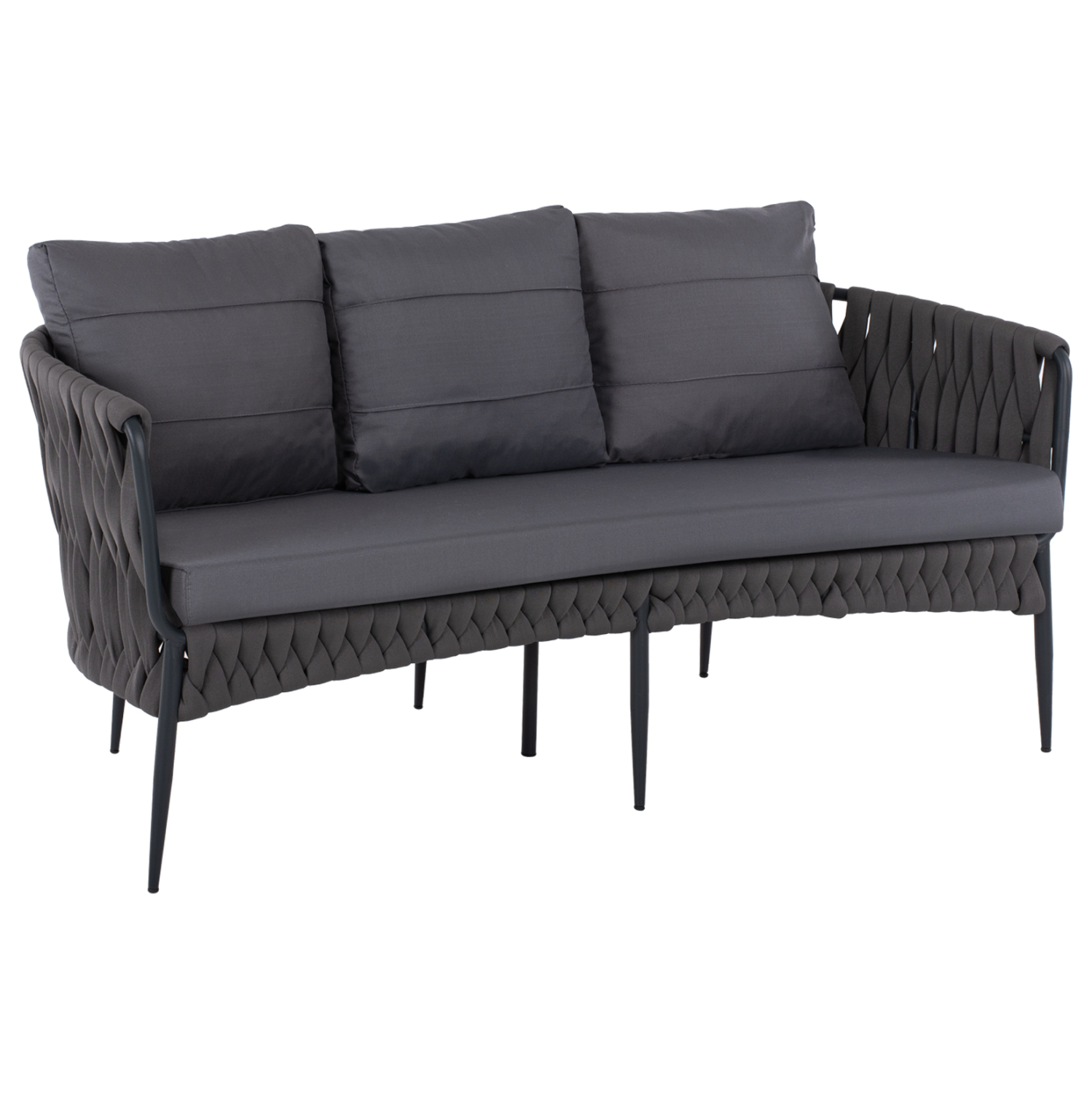 HM5924.10 –Σας παρουσιάζουμε έναν πανέμορφο 3θέσιο καναπέ στις αποχρώσεις του ΓΚΡΙ. Ο συνδυασμός του σκελετού αλουμινίου με το ΑΦΡΩΔΕΣ σχοινί που διατρέχει πλεγμένο όλο τον καναπέ, καθώς και τα 3 μεγάλα μαξιλάρια πλάτης είναι μοναδικός, και μπορεί να αλλάξει άμεσα την εικόνα οποιουδήποτε εξωτερικού χώρου. Χαρακτηριστικό γνώρισμα αυτού του καναπέ είναι ότι τα πόδια είναι ψηλά, με αποτέλεσμα και το ύψος του καθίσματος να είναι ψηλό.