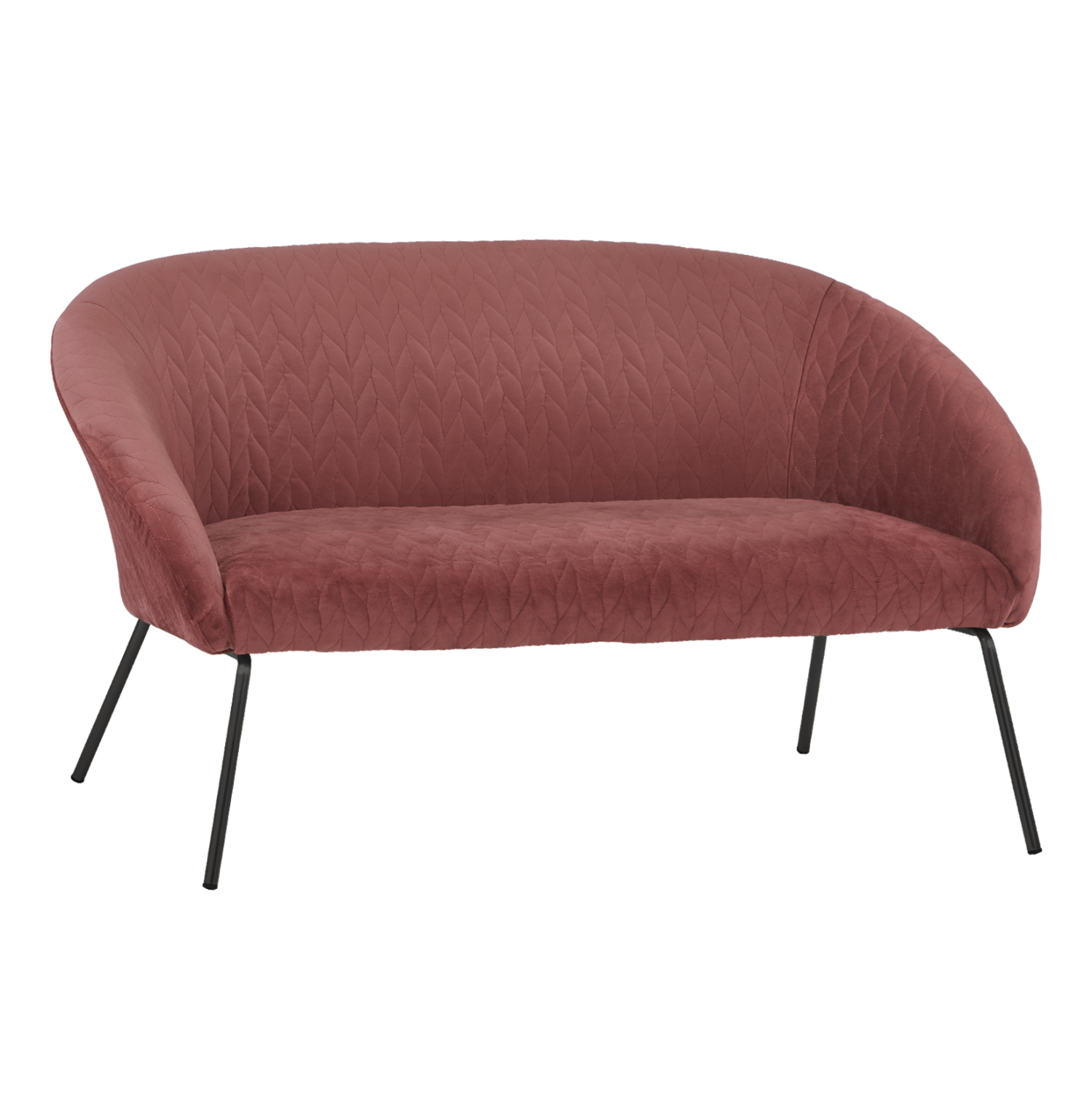 Διθέσιος καναπές JOYCE με ύφασμα βελούδο σε απόχρωση σάπιου μήλου και μεταλλικά πόδια σε μαύρη απόχρωση.