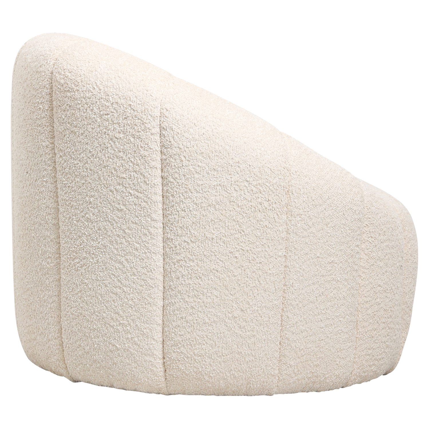 Η επένδυση του καναπέ έχει γίνει εξολοκλήρου με εξαιρετικής ποιότητας μπουκλέ ύφασμα. Μπουκλέ λέγεται οποιοδήποτε ύφασμα που έχει κόμπο-μπούκλα στην ύφανσή του. Κατασκευάζεται από σχεδόν όλες τις πρώτες ύλες (αν και συνήθως είναι συνθετικό) με ειδικές κλωστές με κόμπους ή πολύ στριμμένα νήματα, έτσι ώστε να έχει σγουρή επιφάνεια. Δεν τσαλακώνει και μπορεί να είναι μονόχρωμο, μελανζέ ,καρώ ή τουιντ.