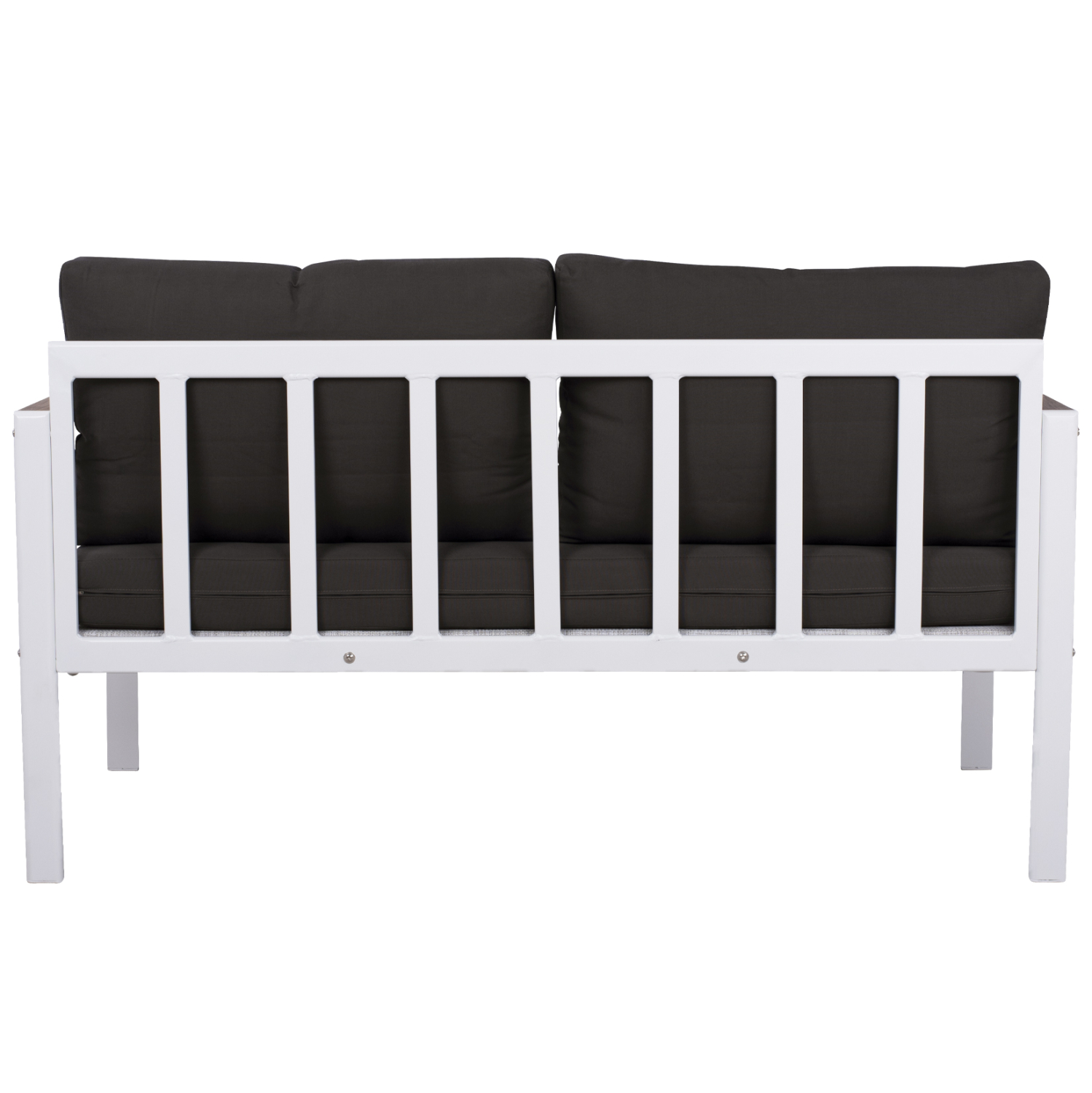 Ο SAFIYA είναι ένας όμορφος 2θέσιος καναπές εξωτερικού χώρου σε συνδυασμό ΛΕΥΚΟΥ-ΑΝΘΡΑΚΙ. Ο συνδυασμός του σκελετού αλουμινίου σε ΛΕΥΚΟ χρώμα με τα μεγάλα μαξιλάρια πλάτης και καθίσματος με πολυεστερικό ύφασμα σε ΑΝΘΡΑΚΙ χρώμα είναι μοναδικός, και μπορεί να αλλάξει άμεσα την εικόνα οποιουδήποτε εξωτερικού χώρου. Χαρακτηριστικό γνώρισμα αυτού του καναπέ είναι ότι τα πόδια είναι ψηλά, με αποτέλεσμα και το ύψος του καθίσματος να είναι ψηλό, ενώ η «πινελιά» με το polywood στα μπράτσα δίνει έναν τόνο πολυτέλειας που δεν περνάει απαρατήρητη.