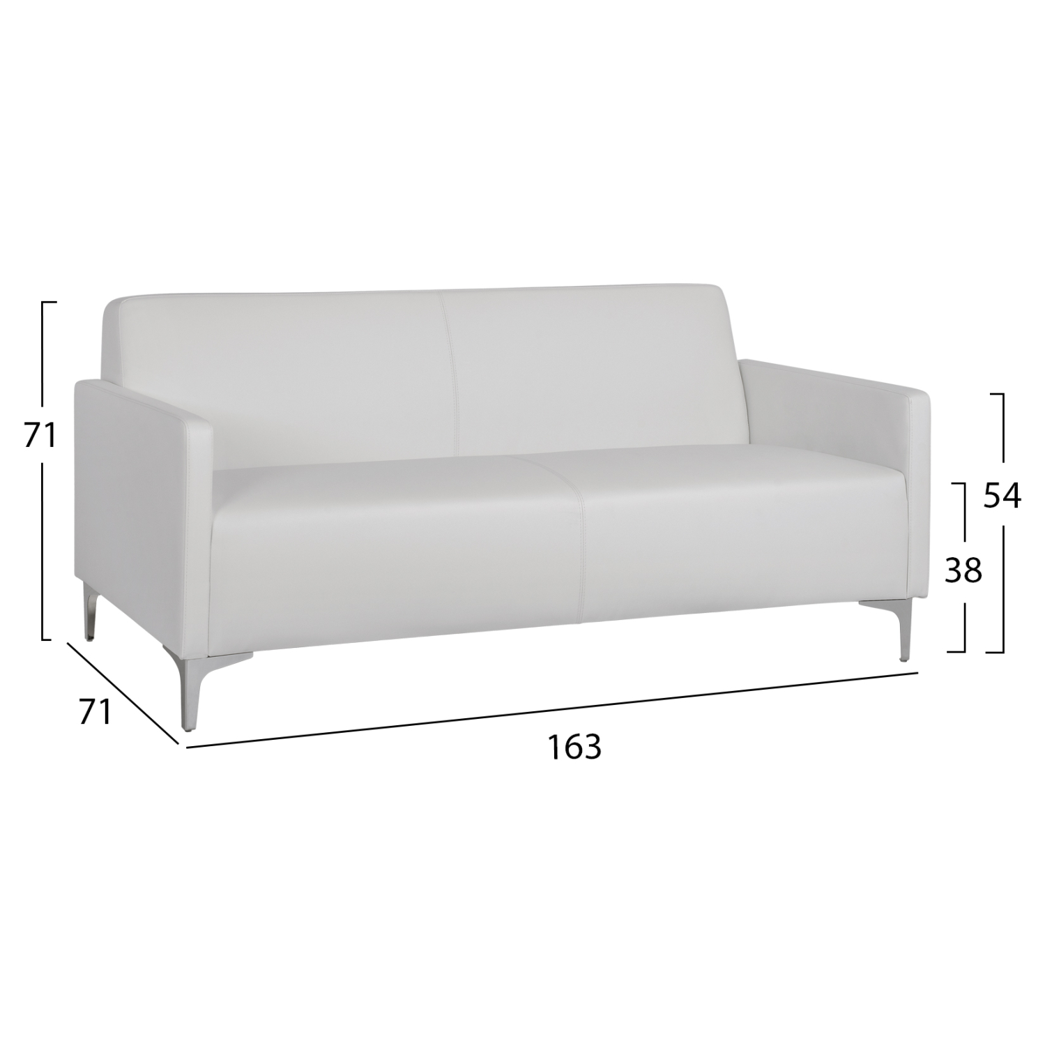 Καναπές τριθέσιος με τεχνόδερμα σε λευκή απόχρωση 163x71x71Υ εκ.