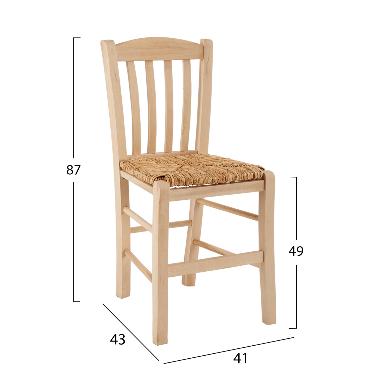 Η καρέκλα καφενείου CHOSEN, για επαγγελματική χρήση, είναι η παραδοσιακή καρέκλα από ξύλο οξιάς σε ΚΑΡΥΔΙ χρώμα. Η πλάτη έχει σχέδιο με κάθετα σκαλιστά «καγκελάκια» και αισθητικά είναι κατάλληλη για ταβέρνα, καφενείο, αλλά και γενικότερα για χώρους διακοσμημένους με το κλασικό Ελληνικό παραδοσιακό ύφος. Παραδίδεται μόνο ο σκελετός, ο οποίος είναι «δεμένος» και με σύρμα για μεγαλύτερη αντοχή και ανθεκτικότητα στο πέρασμα του χρόνου.