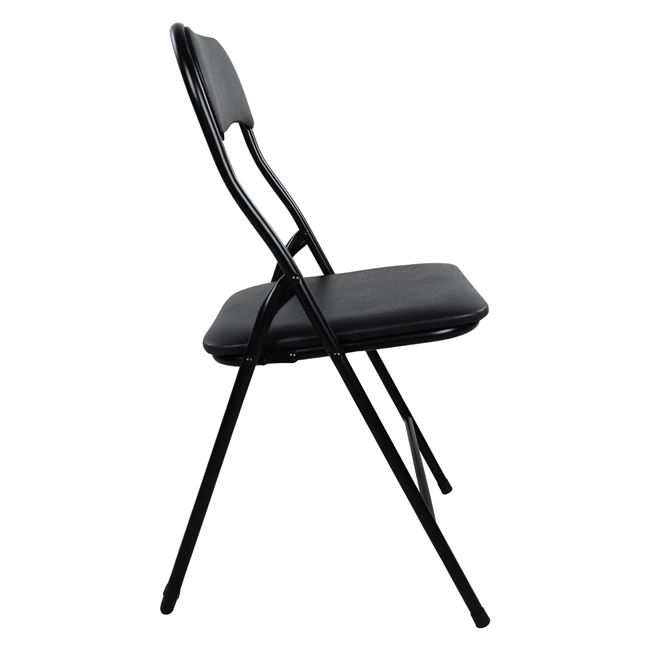 Καρέκλα μεταλλική πτυσσόμενη με επένδυση από PVC σε μαύρη απόχρωση. Διαστάσεις: 38x47x82Y εκ. Ύψος καθίσματος: 45,5 εκ.