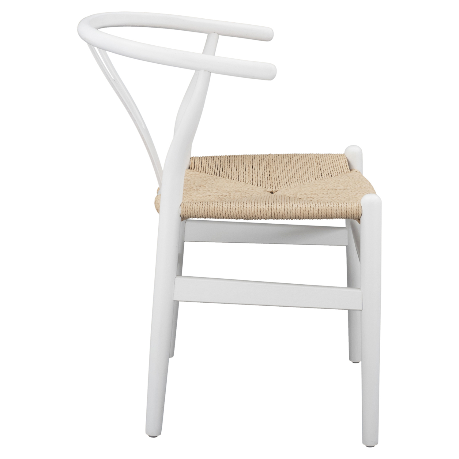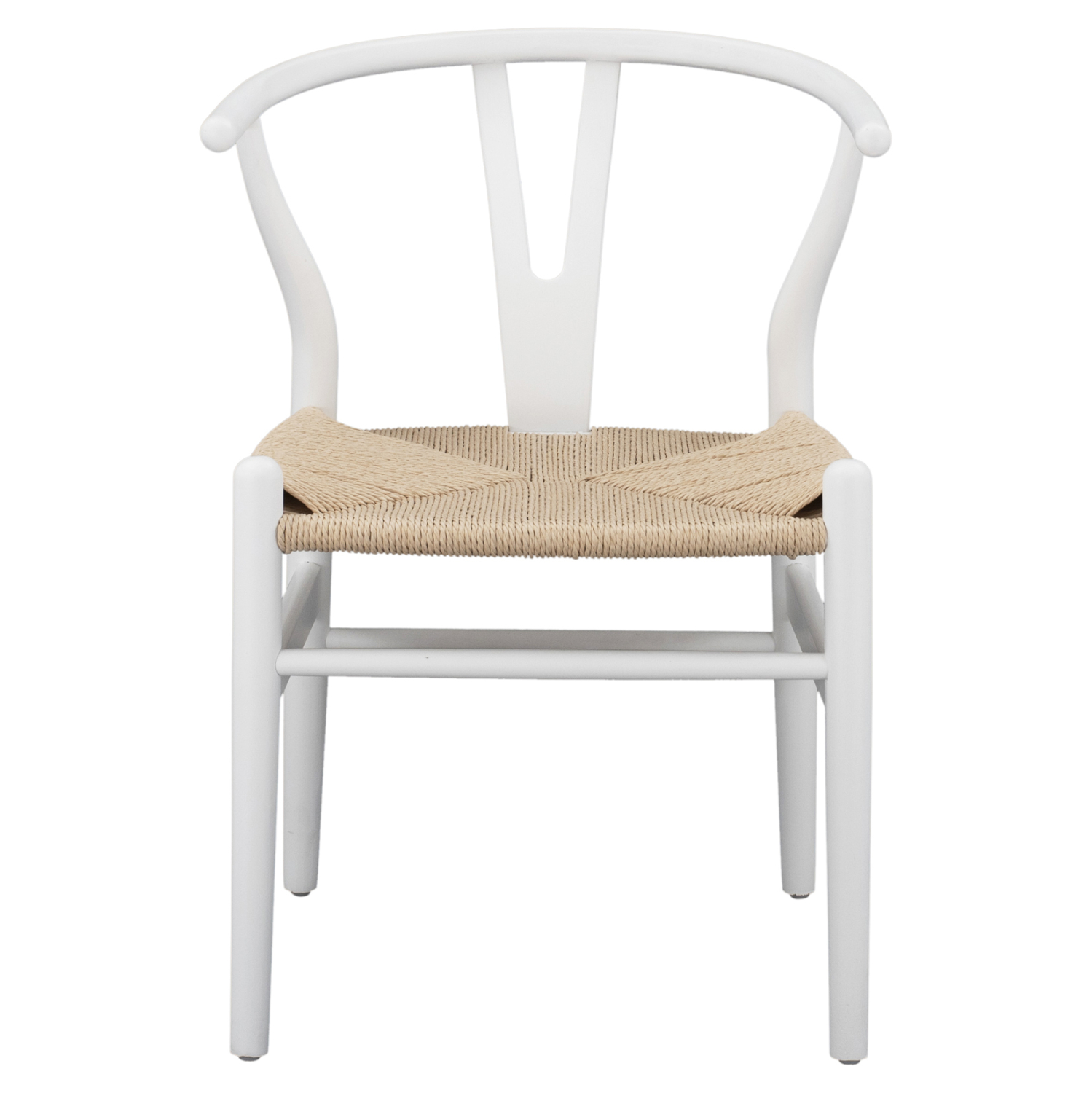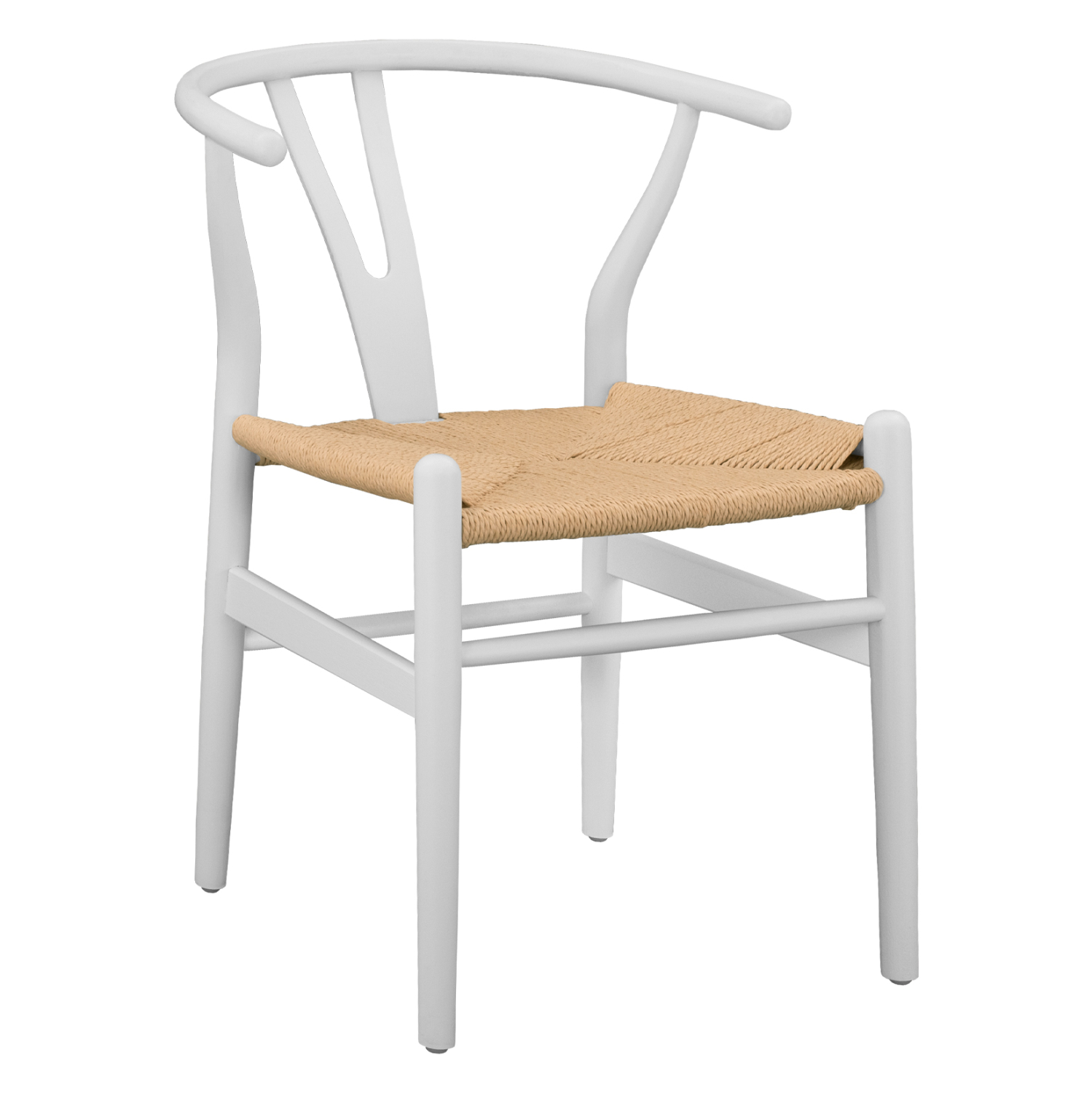 Η καρέκλα BRAVE είναι κατασκευασμένη από υψηλής αντοχής ξύλο οξιάς σε λευκή απόχρωση με κάθισμα χειροποίητης πλέξης σχοινιού σε μπεζ χρώμα.