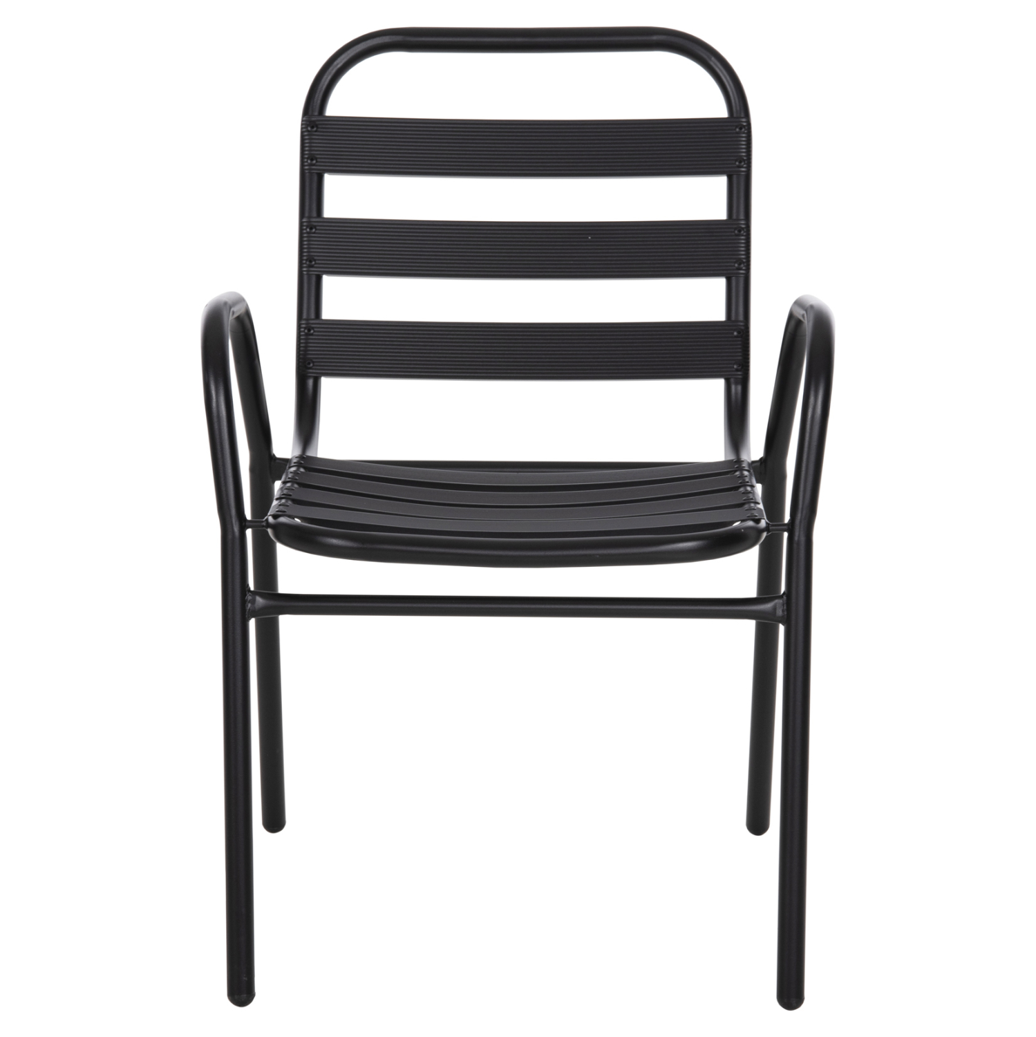 Η καρέκλα εξωτερικού χώρου PRELUDE είναι κατασκευασμένη από μέταλλο και αλουμίνιο σε ΜΑΥΡΟ χρώμα. Ο σκελετός της είναι μεταλλικός, ενώ η πλάτη και το κάθισμα αποτελούνται από «φέτες» αλουμινίου. Σχεδιαστικά, είναι λιτή με όμορφες καμπύλες και χαμηλά μπράτσα, ενώ το γεγονός ότι είναι ελαφριά και ΣΤΟΙΒΑΖΟΜΕΝΗ την κάνει ιδιαιτέρως πρακτική αφού μπορείτε να την αποθηκεύσετε εύκολα στον μικρότερο δυνατό χώρο.