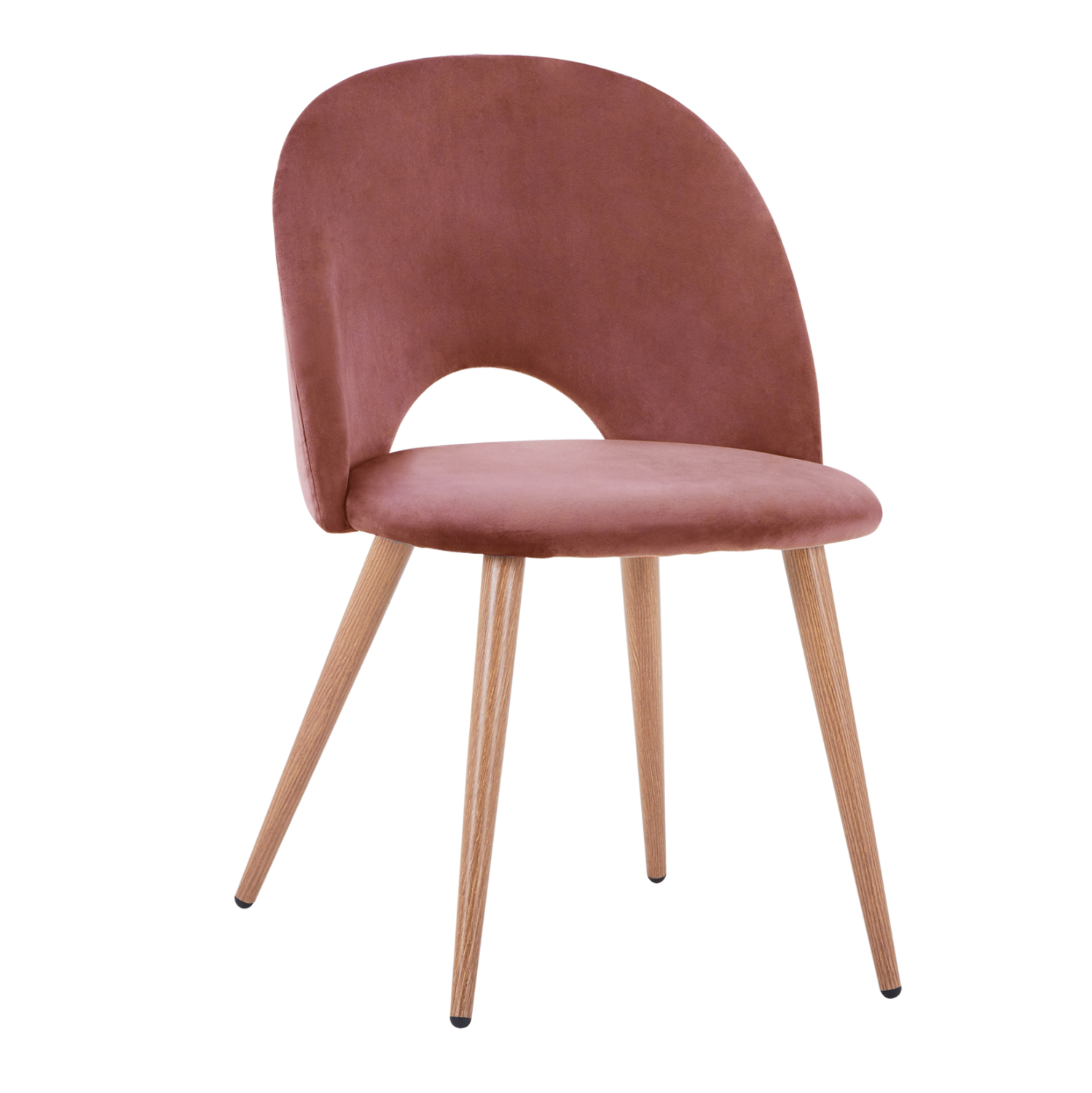 Καρέκλαι SADIE επενδυμένη με βελούδο σε απόχρωση σάπιο μήλο. Τα πόδια είναι μεταλλικά, βαμμένα έτσι ώστε να αποδίδουν την όψη του ξύλου.