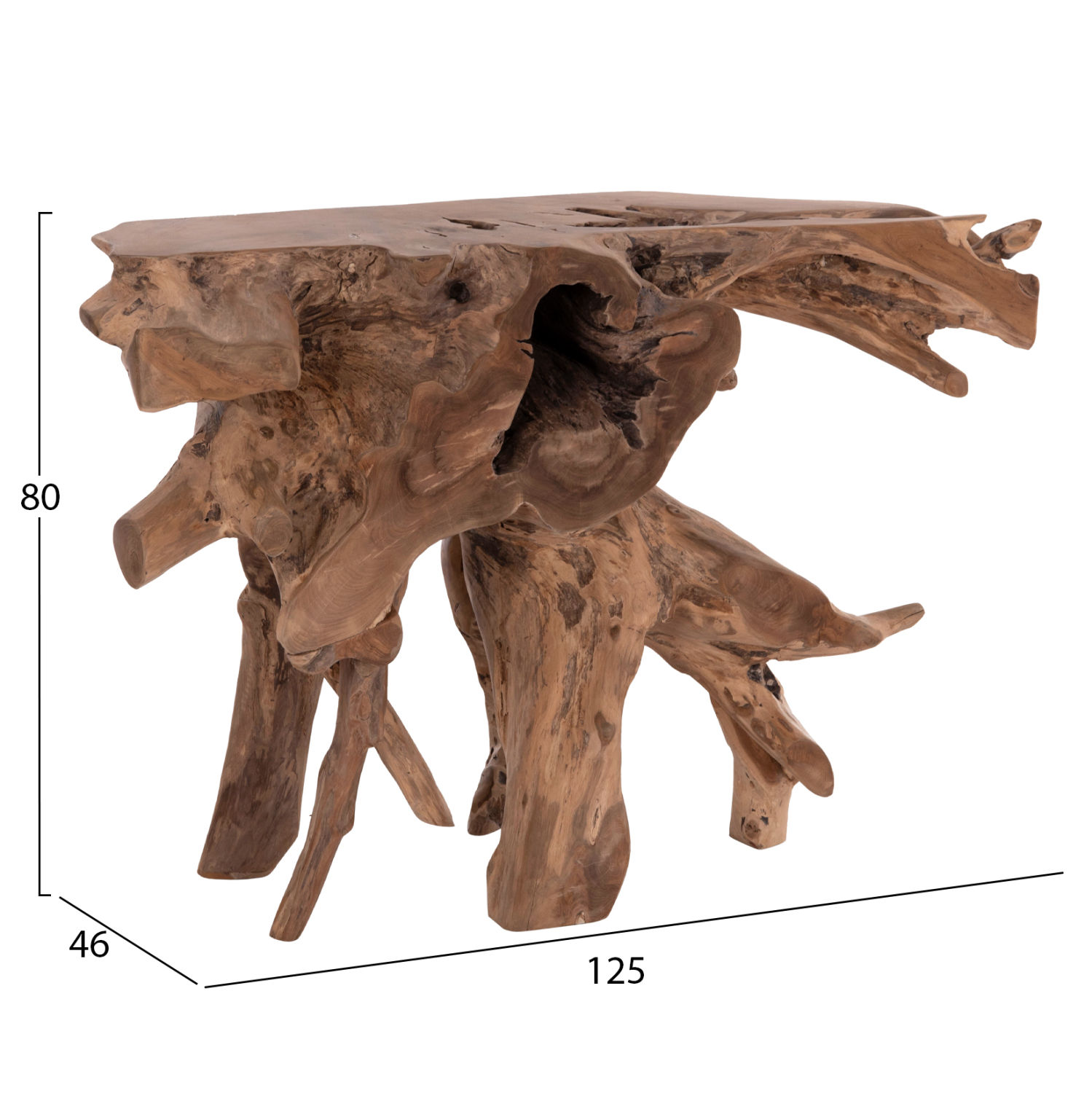 Η κονσόλα είναι κατασκευασμένη από την μασίφ ρίζα του δέντρου ΤΕΑΚ. Το μασίφ συνιστά ένα είδος ξύλου, καθαρό και ατόφιο. Το μασίφ είναι η πιο ακριβή επιλογή σε είδος ξύλου αλλά ξεχωρίζει για την διαχρονική αισθητική του. Το αποτέλεσμα που προσφέρει στον κάτοχό του είναι πραγματικά μοναδικό.