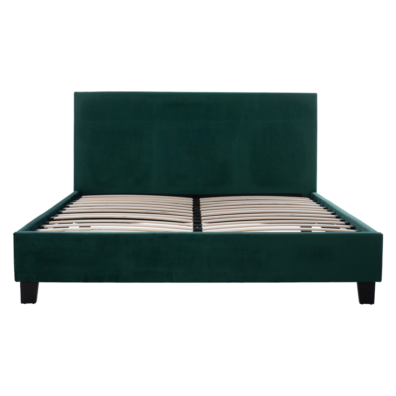 Το κρεβάτι BECCA σε διάσταση διπλού στρώματος, είναι ελκυστικά λιτό, δεν διαθέτει ψηλό ποδαρικό, αλλά διαθέτει σχετικά ψηλά πόδια. Το κύριο χαρακτηριστικό, όμως, είναι η επένδυση όλου του κρεβατιού με ΚΥΠΑΡΙΣΣΙ βελούδινο ύφασμα που δίνει την αίσθηση της πολυτέλειας και της ζεστασιάς. Το στρώμα στηρίζεται σε παραδοσιακές αλλά εργονομικές τάβλες στήριξης, ενώ τα πόδια είναι σε μαύρη απόχρωση δημιουργώντας μια ευχάριστη διχρωμία.