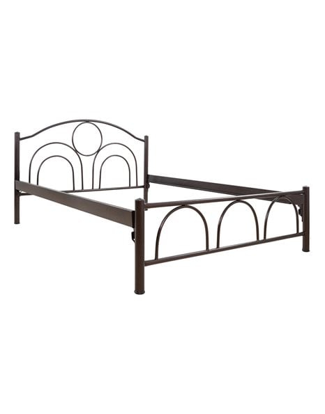 Το κρεβάτι ΚΥΚΛΟΣ είναι ένα μεταλλικό κρεβάτι σε σφυρήλατο ΚΑΦΕ χρώμα και σε διάσταση διπλού στρώματος. Το ψηλό κεφαλάρι και το κοντύτερο ποδαρικό (δηλαδή το κάτω μέρος απέναντι από το κεφαλάρι) φέρουν σχέδια από μέταλλο. Αισθητικά, είναι ακριβώς αυτό που περιμένει κανείς από ένα μεταλλικό κρεβάτι. Τα πόδια του κρεβατιού είναι ψηλά με αποτέλεσμα να υπάρχει αρκετός χώρος από κάτω για να τον χρησιμοποιήσετε όπως θέλετε και, φυσικά, για ευκολότερο καθάρισμα.