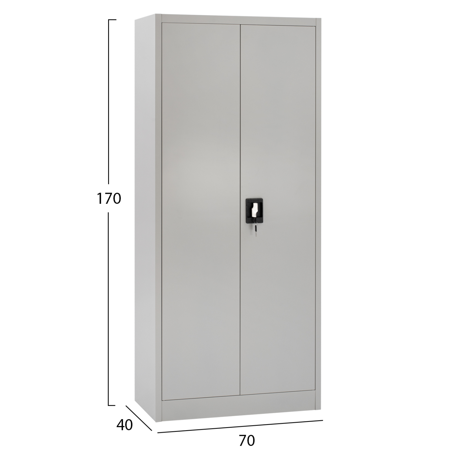 Η δίφυλλη ντουλάπα διαθέτει κλειδαριά ασφαλείας και είναι κατασκευασμένη εξολοκλήρου από μέταλλο με ηλεκτροστατική βαφή, που προστατεύει από φθορές, υγρασία και σκουριά.