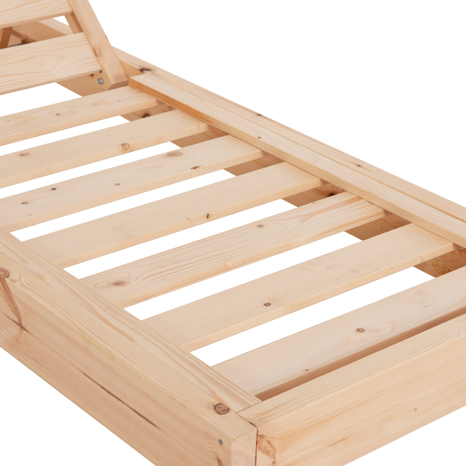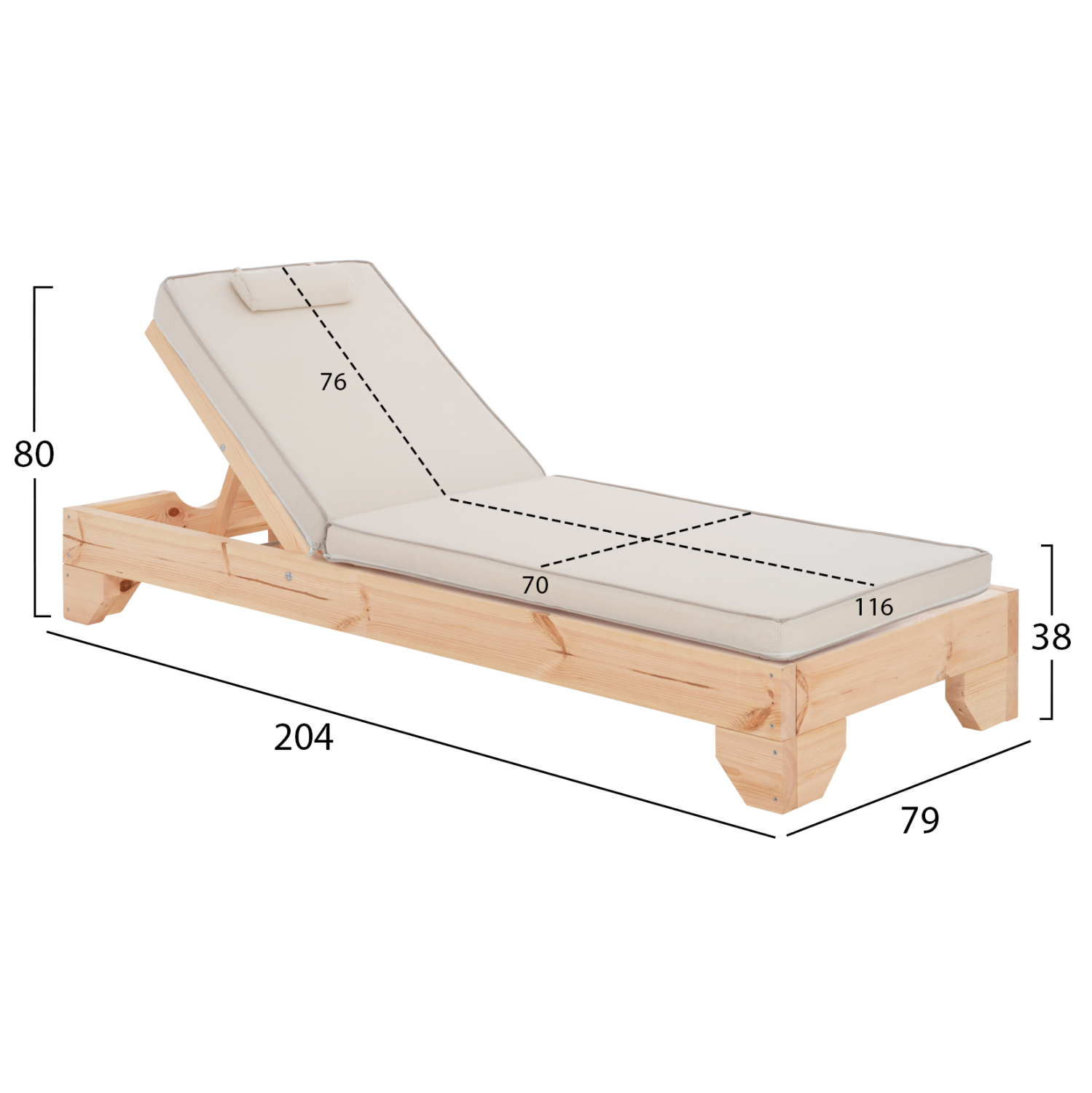 -Ολόκληρη η ξαπλώστρα έχει κατασκευαστεί από ξύλο πεύκου με εμποτισμό και επιπλέον στρώση με βερνίκι νερού. Το πεύκο είναι ένα μαλακό, λευκό ή ανοιχτό κίτρινο ξύλο το οποίο είναι ελαφρύ σε βάρος με ευθύγραμμα νερά ξύλου. Αντέχει στη συρρίκνωση, διόγκωση και κάμψη. Ο εμποτισμός υπό την ευρεία έννοια είναι ο χρωματισμός του ξύλου (συνήθως βερνίκια) με την μέθοδο της εμβάπτισης.