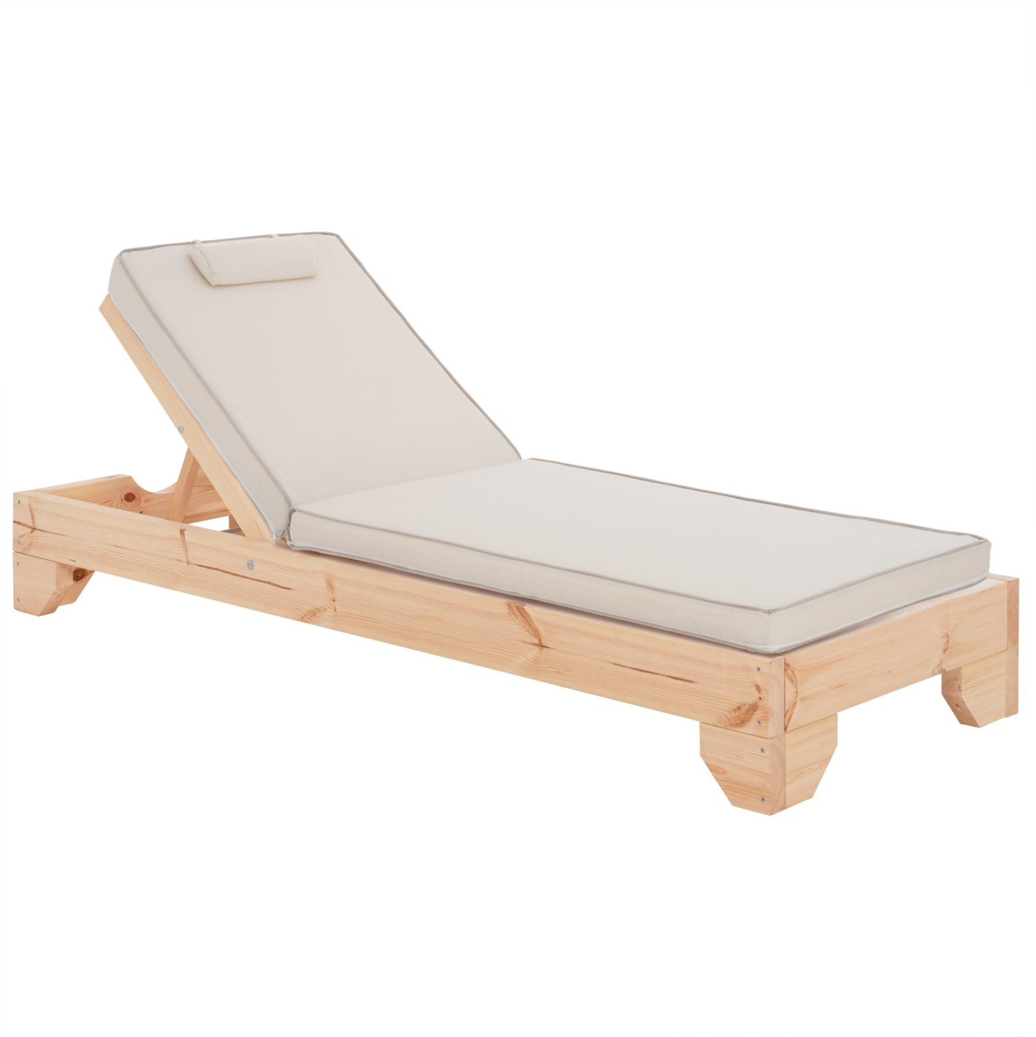 -Το μαξιλάρι/στρώμα με μαξιλαράκι κεφαλής που συνοδεύει την ξαπλώστρα είναι από αφρό μέτριας σκληρότητας ενώ το κάλυμμα είναι από textilene σε χρώμα ΕΚΡΟΥ. Δένεται στην ξαπλώστρα με κορδόνια.