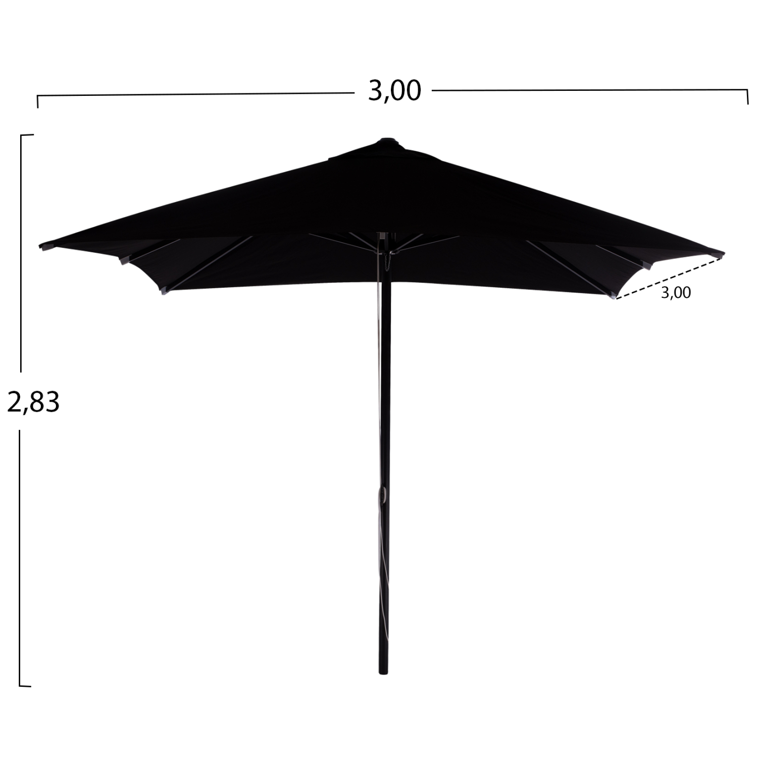 Επαγγελματική ομπρέλα αλουμινίου τετράγωνη 3x3x2,83Y μ. με ακρυλικό πανί σε μαύρη απόχρωση.