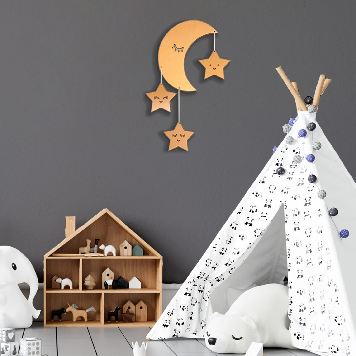 Παιδικό διακοσμητικό τοίχου σε σχήμα Φεγγάρι με αστεράκια. Κατασκευασμένο από mdf.